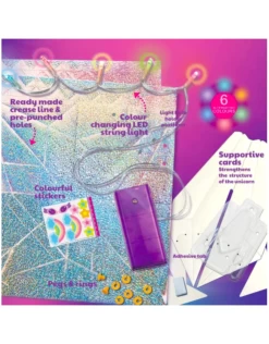 This origami kit is sure to light up a kid’s day…and their room décor as well! Features an easy-make design that includes crease holes for origami beginners. Then add the LED lights to finish off a beautiful creation that makes a great gift or addition to your room! Measures 9.5″L x 12″W when assembled. Requires 2 AA batteries (not included).