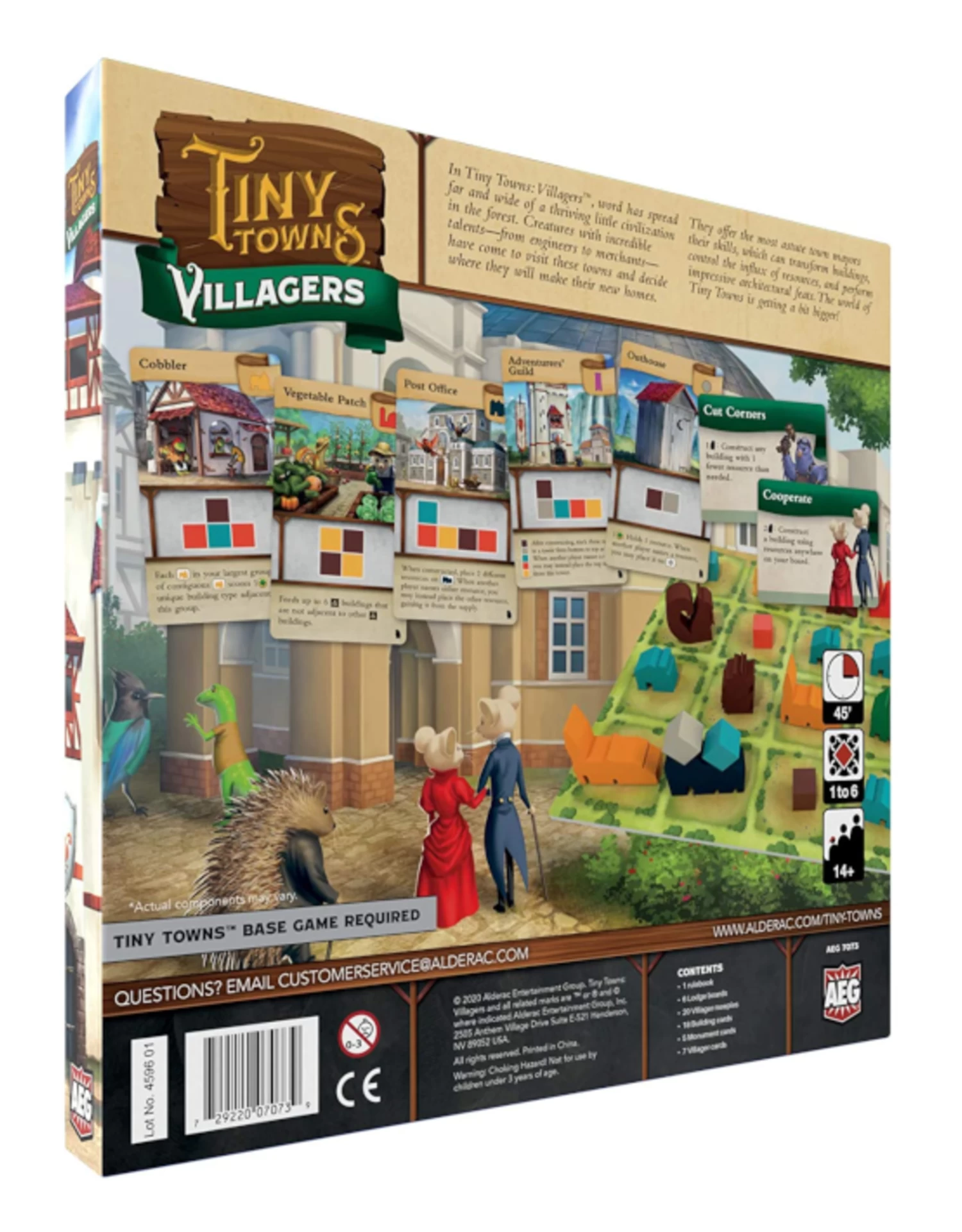 In Tiny Towns: Villagers, word has spread far and wide of a thriving little civilization in the forest. Creatures with incredible talents – from engineers to merchants – have come to visit these towns and decide where they will make their new homes. They offer the most astute town mayors their skills, which can transform buildings, control the influx of resources, and perform impressive architectural feats. The world of Tiny Towns is getting a bit bigger!