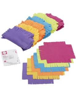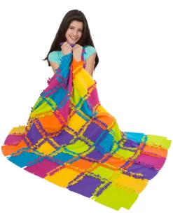 Alex DIY Knot-A-Quilt Kit is an easy way to instantly create a super soft quilt. There is absolutely no cutting, sewing or knitting involved! Simply tie the pre-cut fringe squares together one by one. The fleece squares come in 6 bright colors. Kids will be able to knot a 3.5 foot by 4.5 foot quilt in no time! Includes 48 fringed 9 inch squares.