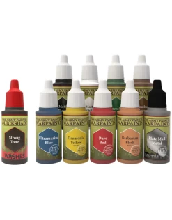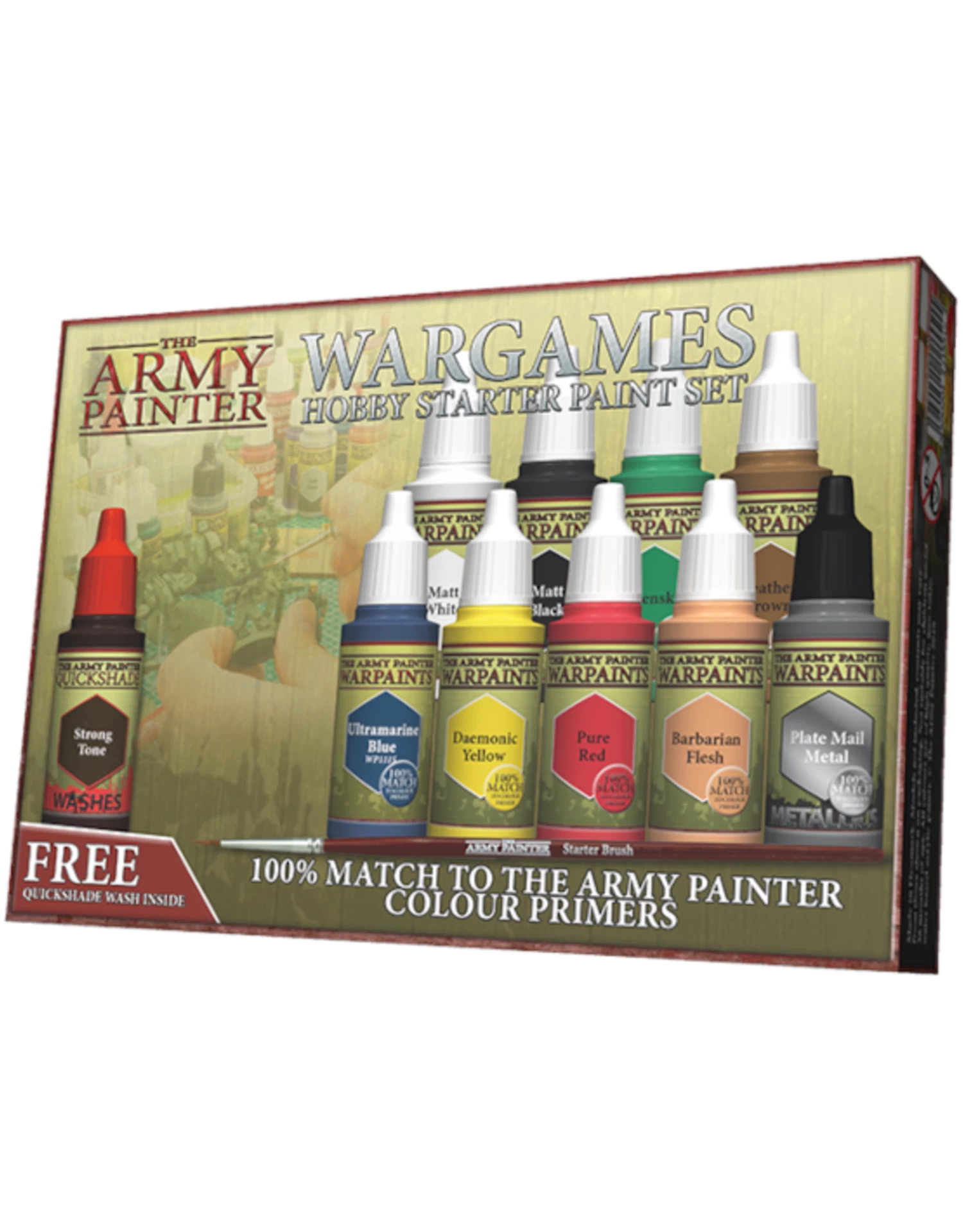 The perfect Starter Paint set for any wargaming system. All the base colours you need for painting miniatures. In this set you will find 10 of the most needed colours – including one FREE Quickshade Wash that makes your miniatures come to life with a natural shading. The set even provides you with a brush to get you started!