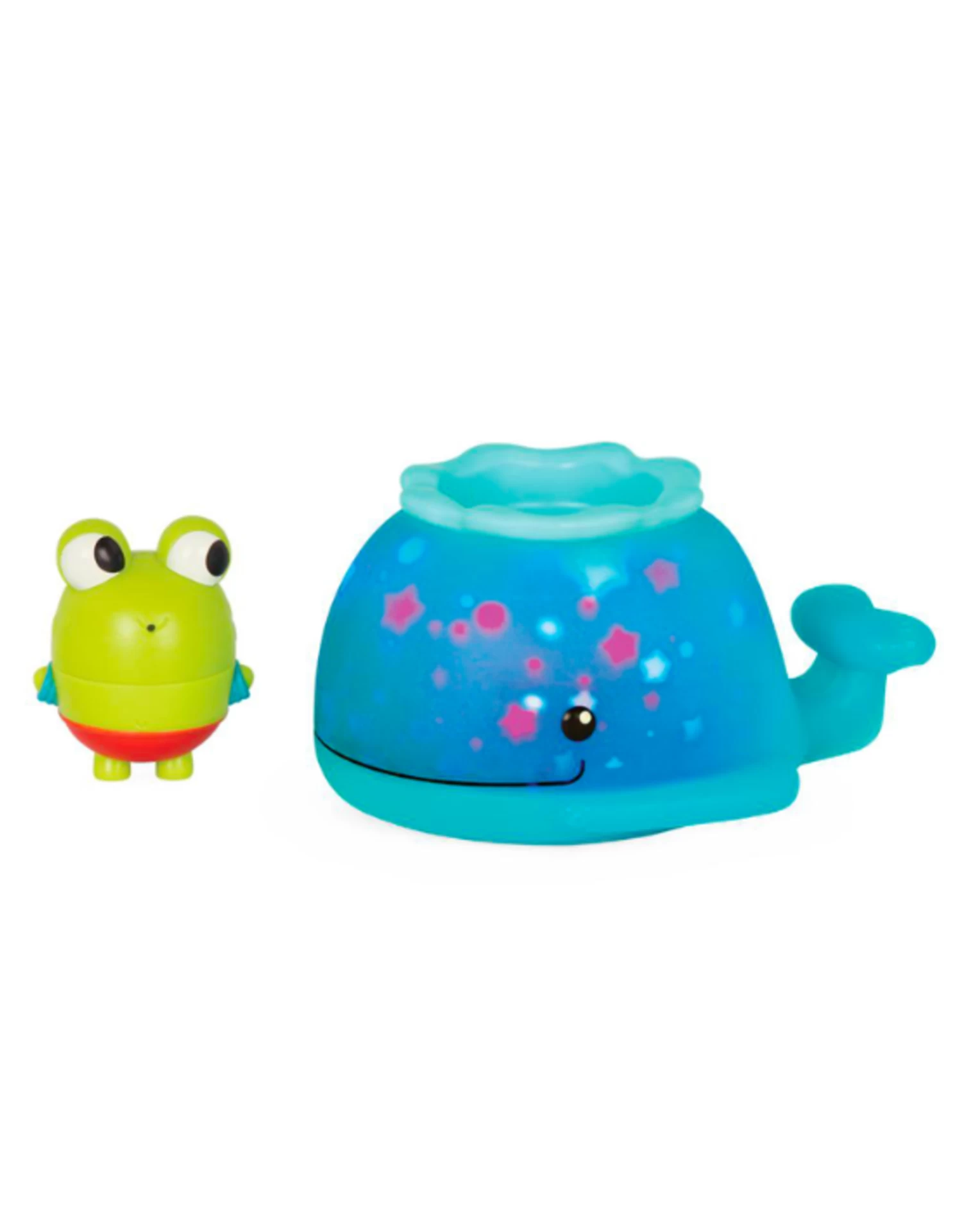 Watch the whale glow and project stars when placed in water. It’s a tub time disco!