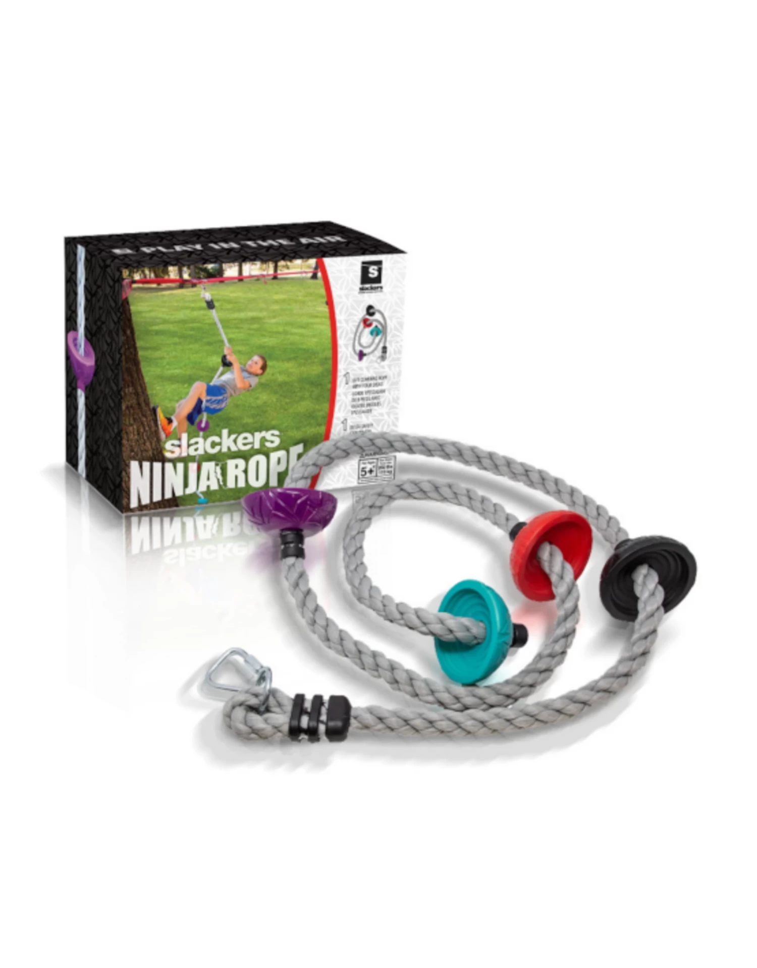 Slackers climbing rope is the perfect accessory to use as the starting point for the Ninjaline, or in the middle to swing from one obstacle to the next. Ninjas build confidence and strength too!