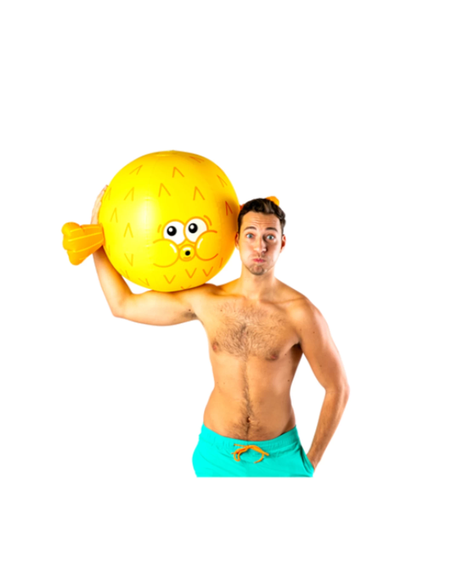 PUFFERFISH beach ball inflates to 30 in wide! This puffed up 30-inch wide beach ball is supremely fun to play with in the pool or at the beach, and has cute little fin for fun. It’s a perfect beach day companion. What are you naming yours?