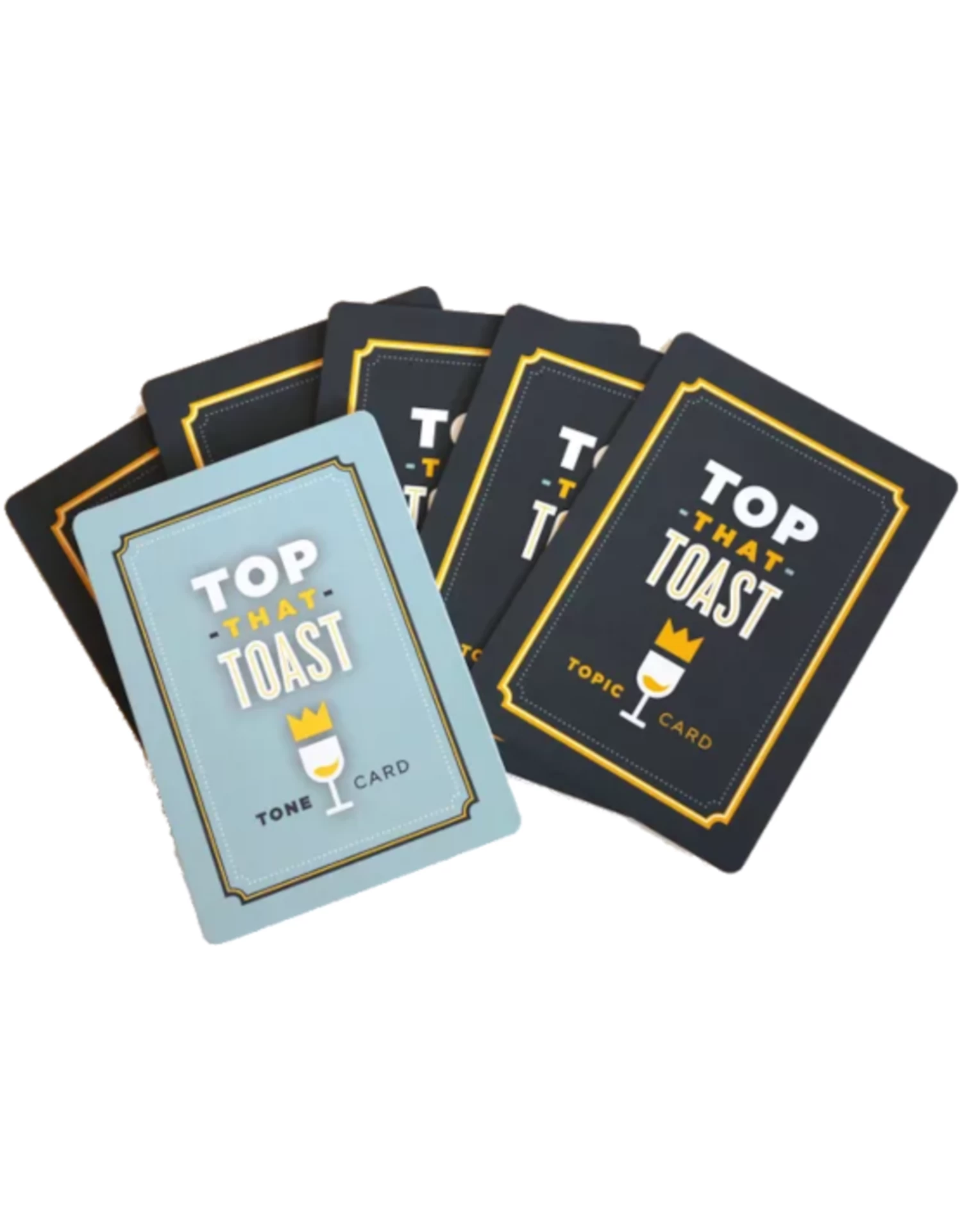 It’s not every day that the opportunity arises to pay tribute to your kin and comrades, but with this cheers-inspiring game you can turn any casual get-together into a toast-worthy celebration! Top That Toast is a card game that celebrates the beauty of human expression by encouraging players to share their toasts with the most. The eldest member of your crew serves as the Facilitoaster, and sets the mood with the Tone cards that range from the classic Sincere, Tearjerker, and Roast styles, to Rhyme Time and Sing It challenges. Hundreds of topics like “bucket list item,” “craziest family member,” and “the biggest risk you’ve taken,” provide plenty of fodder for an unforgettable exchange of words, wisdom, and wit.