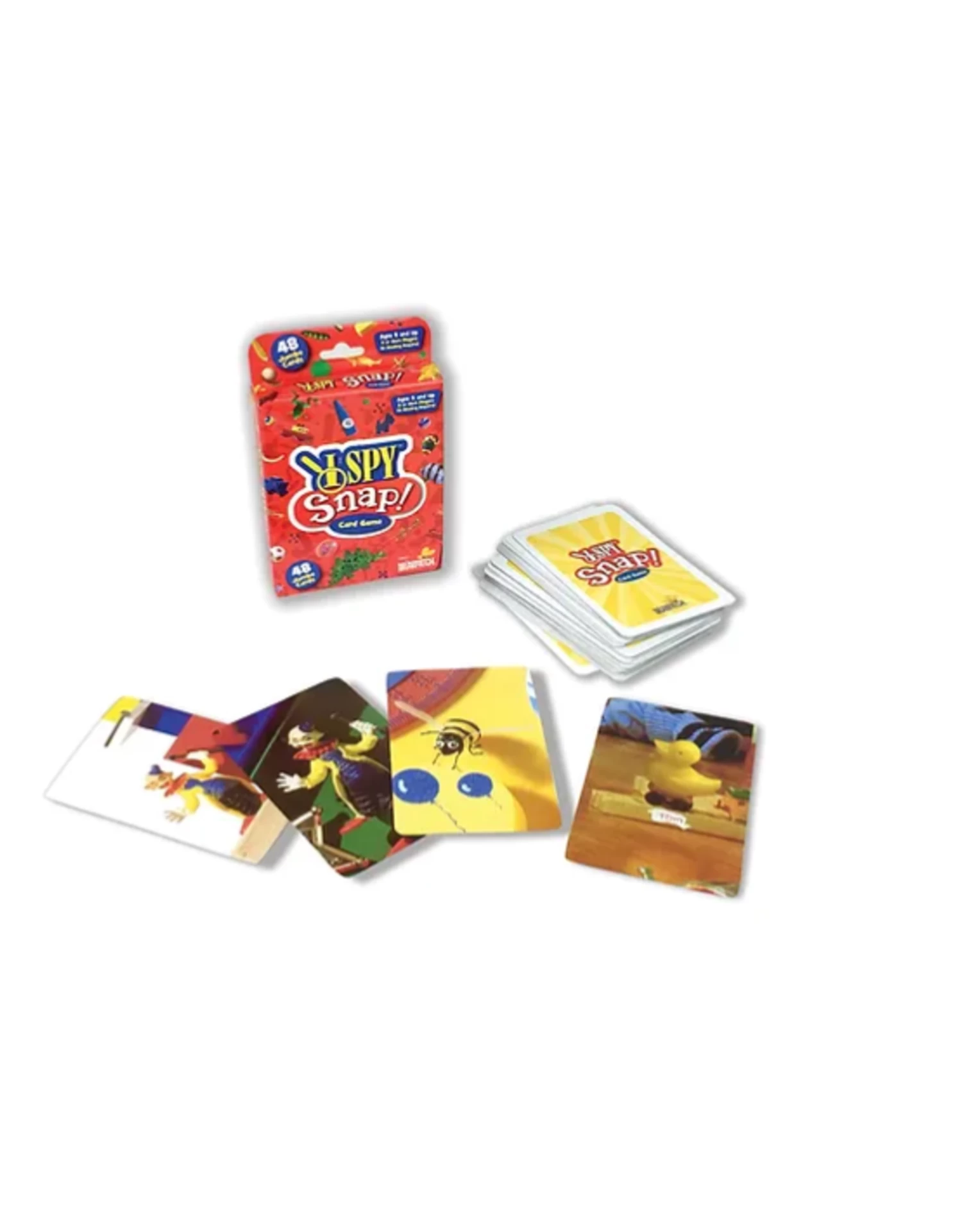 I SPY Snap! brings a twist to a classic card game. Players turn up one card at a time. If you see a match among the turned up cards, be the first to call out the name of the object! The player with the most cards wins.
