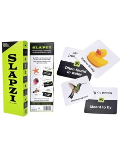 The fast-matching, card-slapping, everyone-laughing picture game! SLAPZI is all about speed. Be the first to match the right picture cards to the right clue cards. SLAPZI is super-simple to learn, and super-fast to play!