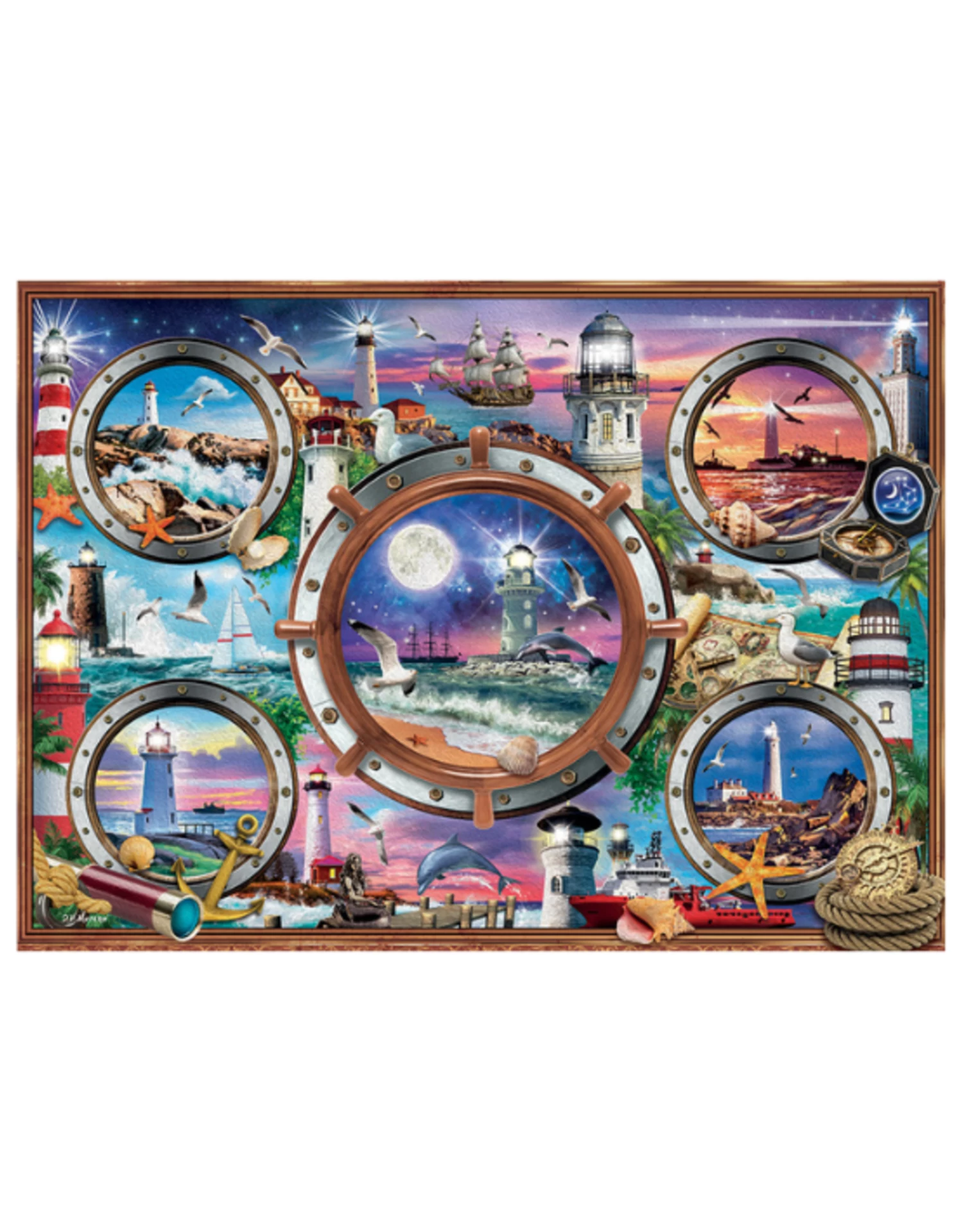 For our ocean lovers, we have Lighthouses, a collage of many beautiful beacons of light. The lighthouses are not just in the portals, but throughout the 1000 piece scenic puzzle with a background full of all things nautical and ocean worthy like sailboats, dolphins, seagulls, and maybe even treasure – if you count the pearl in the oyster!