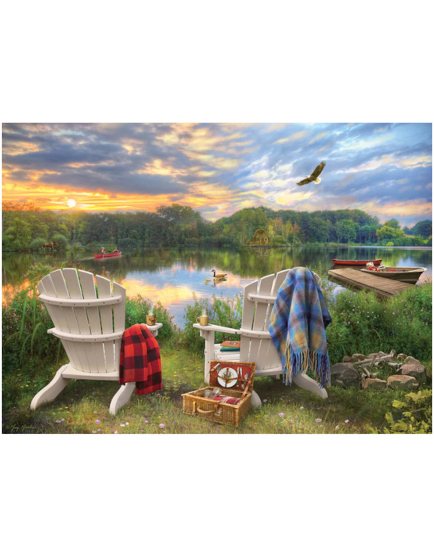 All appears calm and peaceful on the Lakeshore. But is there a moose crossing the water by the canoe? Enjoy this 1000 piece puzzle by Greg Giordano.