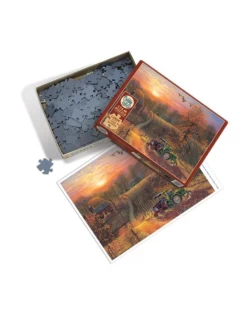 Unlike the focused birds flying above the barns, it looks like the dog and both farmers are Taking a Break from their hard days work under the autumn sun. The fields have been nicely groomed by the tractors and all is looking well for the fall season ahead. This is a challenging Easy Handling 275 piece puzzle due to the similarities in brown and orange colours. It’s definitely a puzzle for someone who has a little more skill with identification, but for anyone, it will be a stunning puzzle when completed!