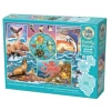 Cobble Hill Family Piece puzzles have 3 different sized puzzle pieces. Children can help with the larger pieces while adults work on the smaller.