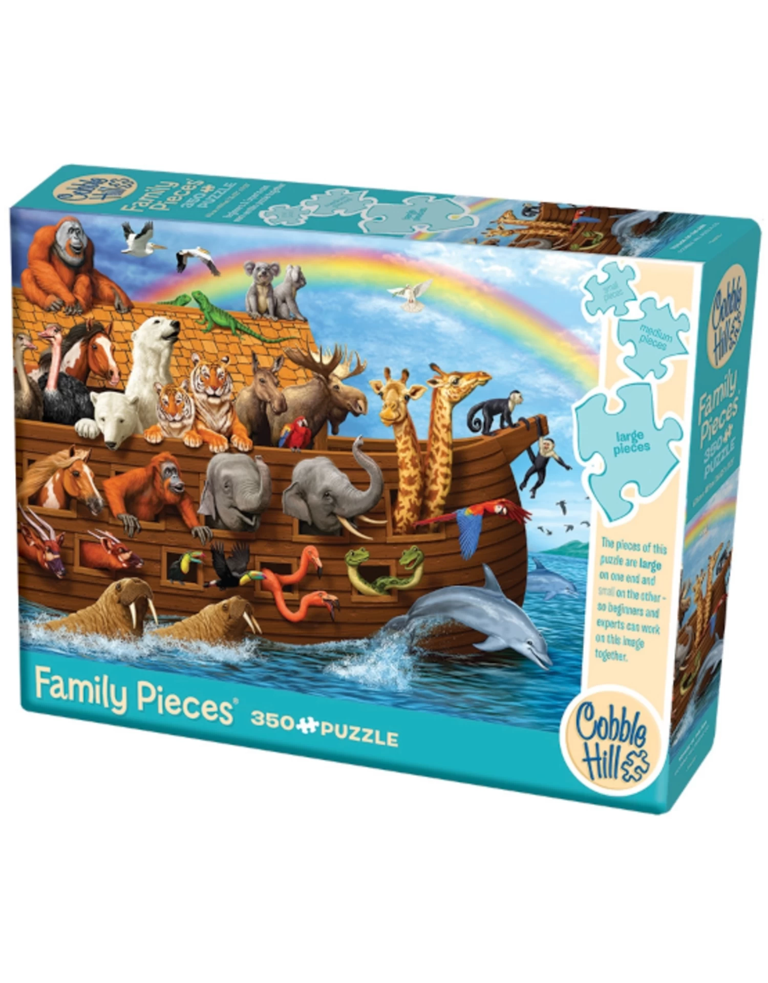 God’s promise shines through His rainbow as the animals enjoy crossing the ocean on their Voyage on the Ark. A pleasing Family Pieces 350 puzzle.
