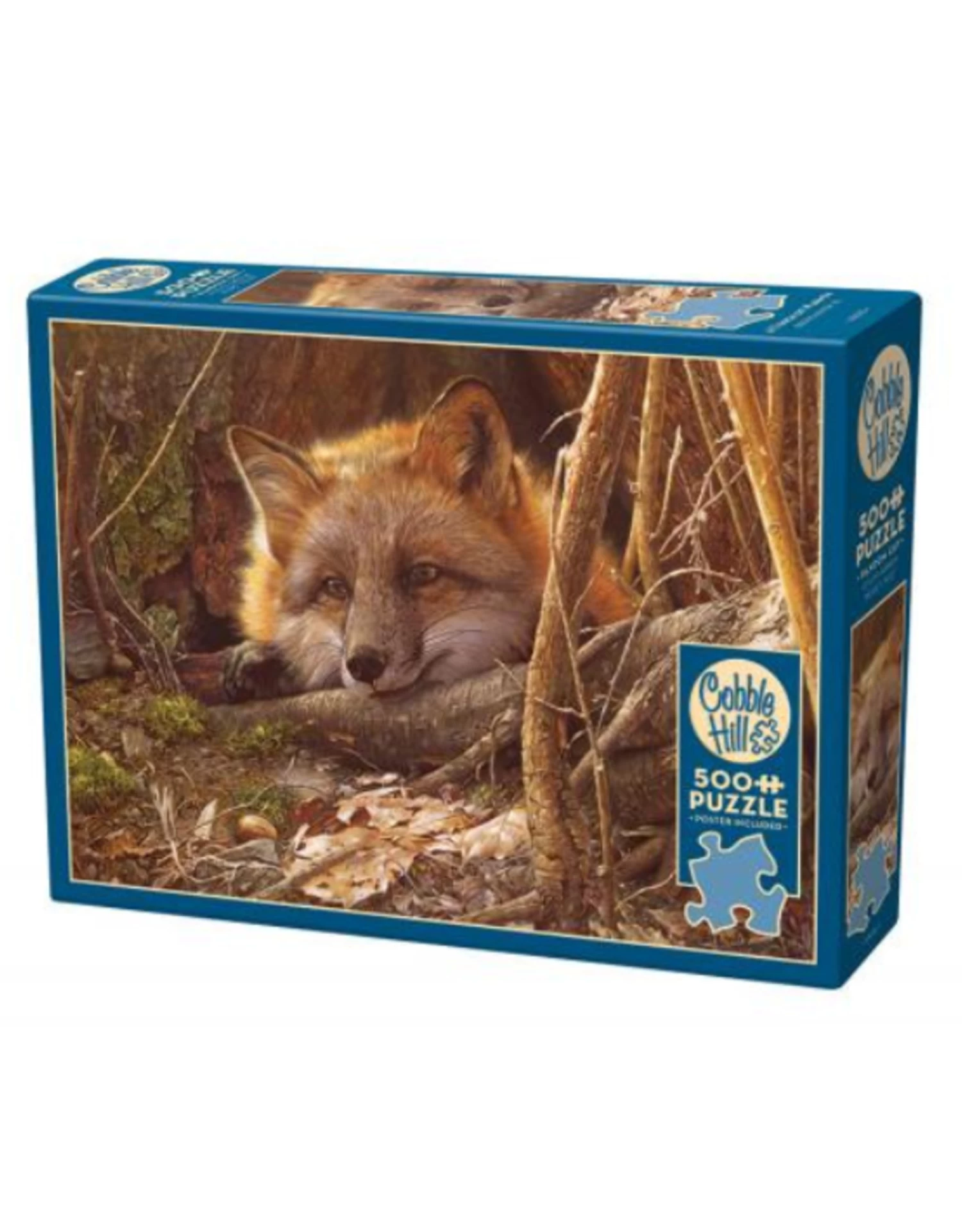 The soft sunlight casts a A Touch of Warmth on the fox as it rests its head on a branch, camouflaged in the dry brown leaves of the forest. A beautiful 500 piece wildlife puzzle.