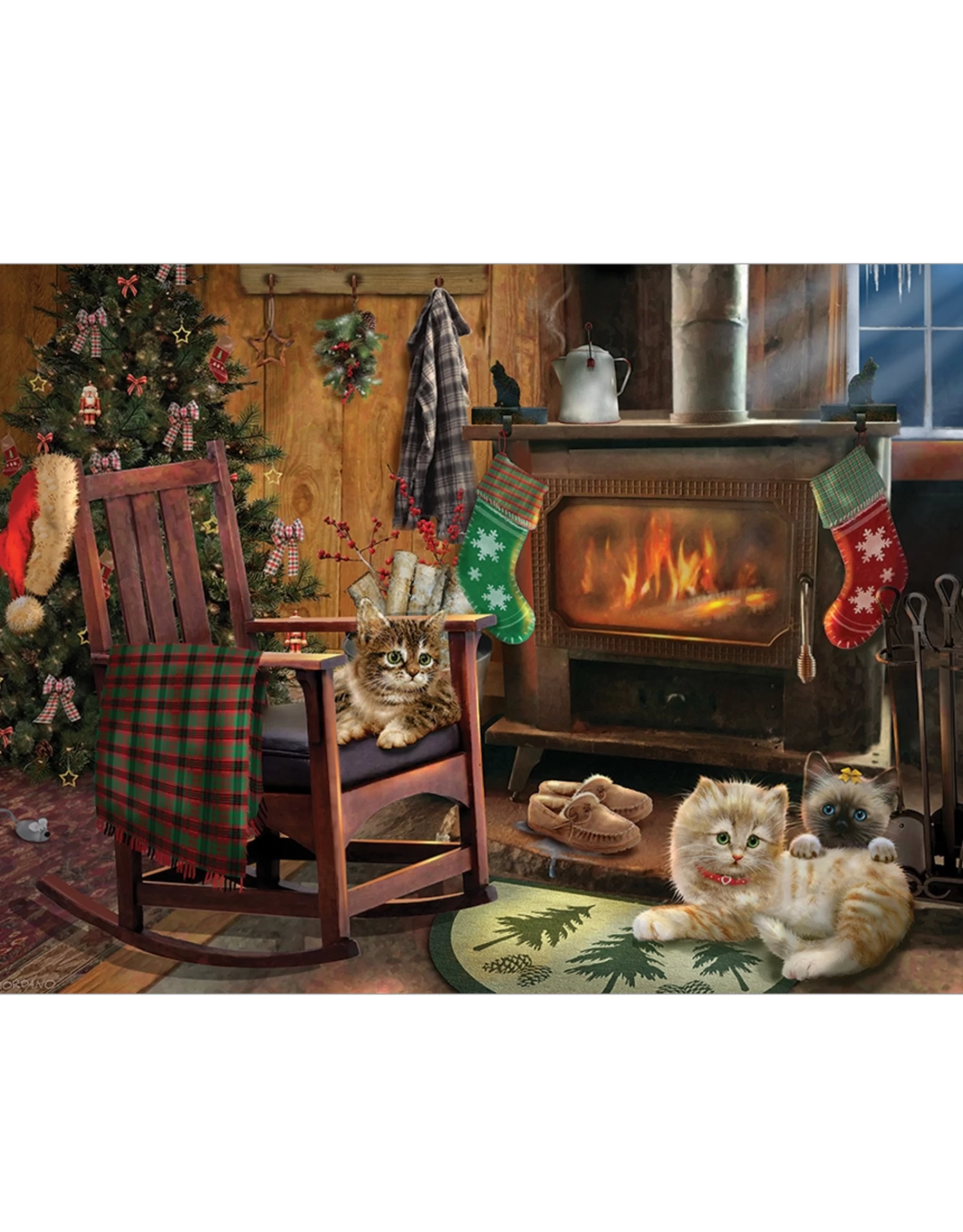 It’s Christmas day and the critters want to play. The kettle is on and Kittens by the Stove are waiting for the owners to give them their stockings.
