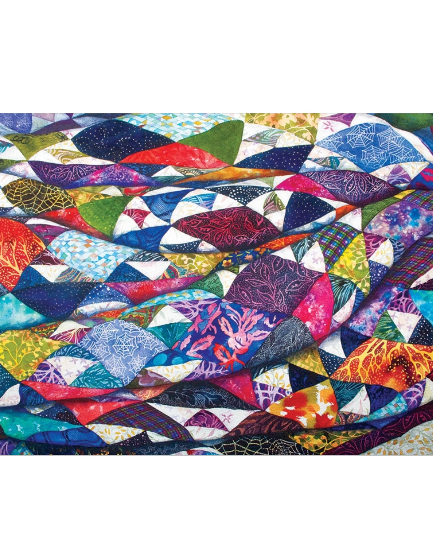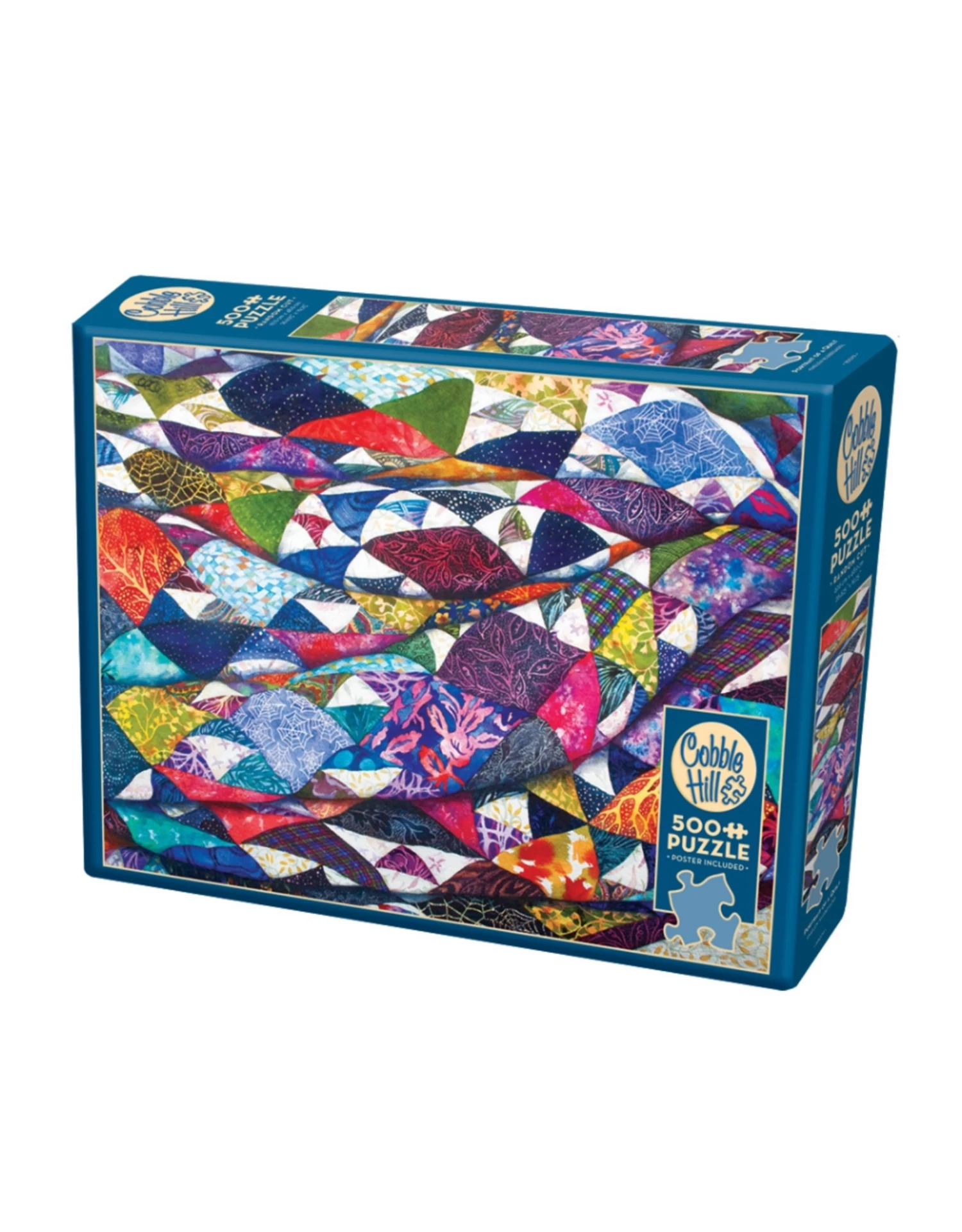 The Portrait of a Quilt has patches of blues and purples highlighted with hues of gold that warm up this patchwork. Cobble Hill’s 500 piece puzzles have large size random cut pieces and it includes a reference poster to help in your adventure!