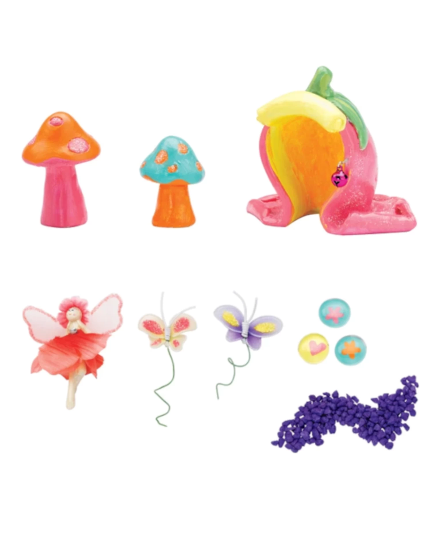 Contents Include: Seeds and soil Gardening dish Paint Enchanted flower house, Tiny gemstone treasures Flowers Butterflies