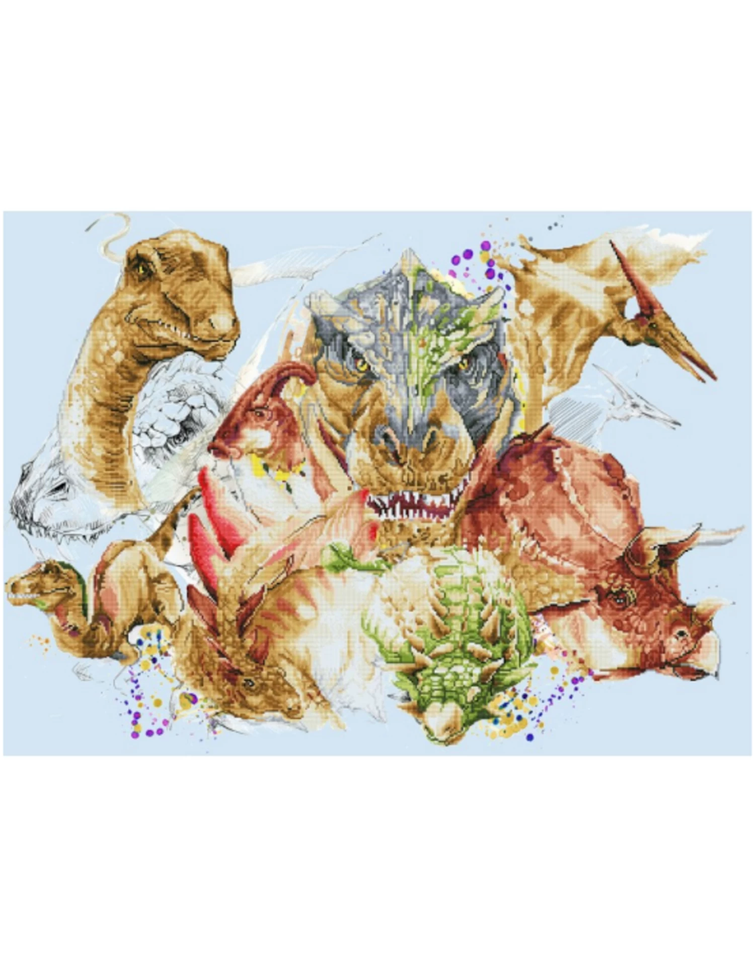 This rustic collage of earth’s prehistoric ancestors features some fan favourites—such as the triceratops, brontosaurus and the mighty tyrannosaurus rex!