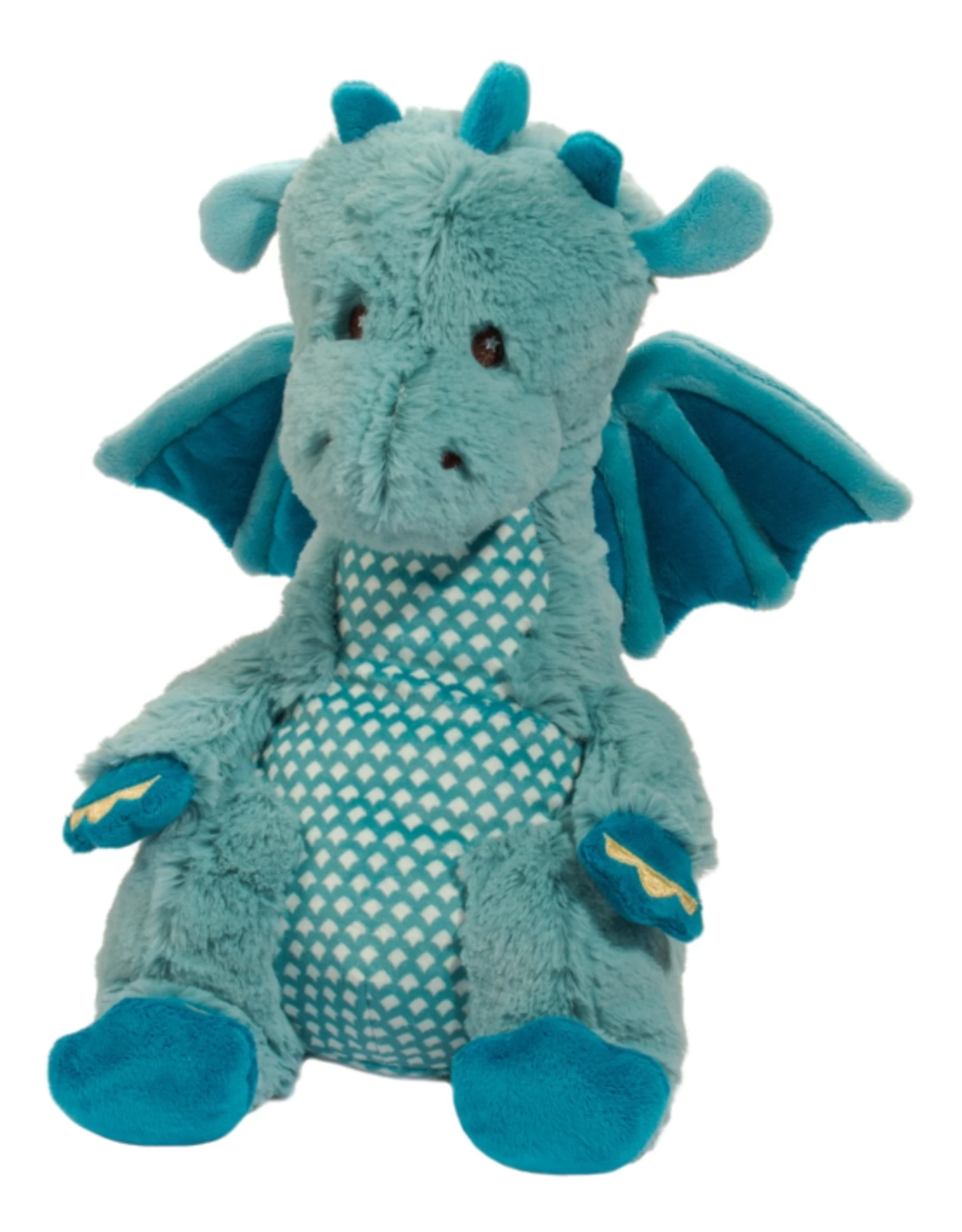 When your little knight needs a magical friend to accompany them on a fantasy quest, look no further than our adorable Demitri the Dragon Plumpie stuffed animal! Designed with hugs in mind, this mythological creature has been brought to life in alluring pastel blue plush. Slightly understuffed, he features a lovable slouch that begs to be squeezed and snuggled. Loaded with fun details, Demitri’s golden claws lend a shine to his hands and feet, while a stimulating scale pattern decorates his neck and belly. Best of all, a handsome pair of wings adorns his back. And, though they may be small, we guarantee they’re big enough to carry him and your little one away on imaginative adventures! Like all of the Douglas Cuddle Baby products, our Demitri Dragon collection features an assortment of other accessories featuring this character so that he can be enjoyed on his own or matched with coordinating Dragon toys!