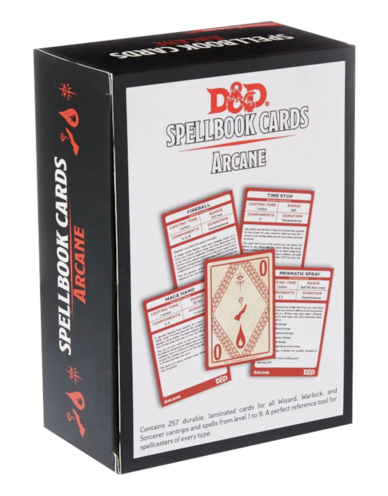 - Contains 257 cards for all Sorcerer, Warlock, and Wizard spells from cantrips to level 9.