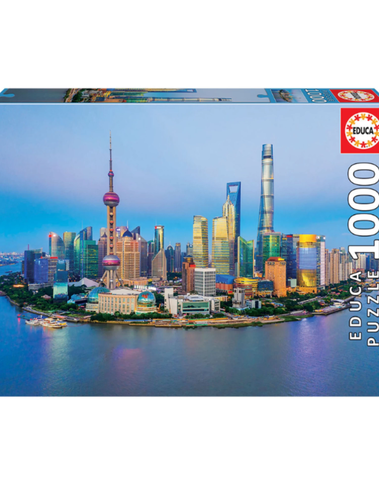 Puzzle of 1000 pieces representing a Shanghai skyline sunset.