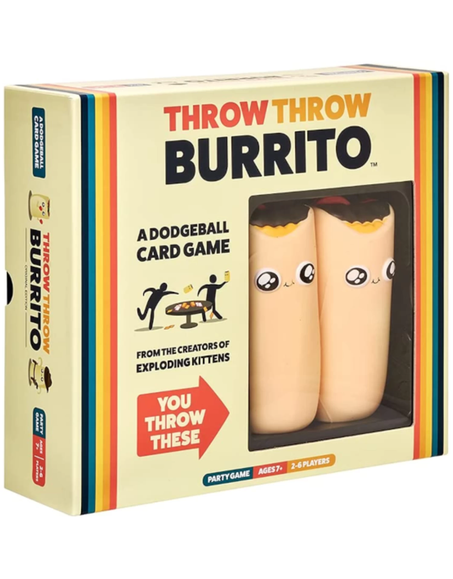 Throw Throw Burrito is what you get when you cross a card game with dodgeball. Try to collect matching sets of cards faster than your opponents while simultaneously ducking, dodging, and throwing squishy airborne burritos. The cards you collect ear points, but getting hit by flying burritos loses them. So clear some space and put away the antiques, because you’ve never played a card game quite like this before.
