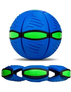 - Unique sports toy transforms from a 9″ flying disc to a 6″ ball when thrown