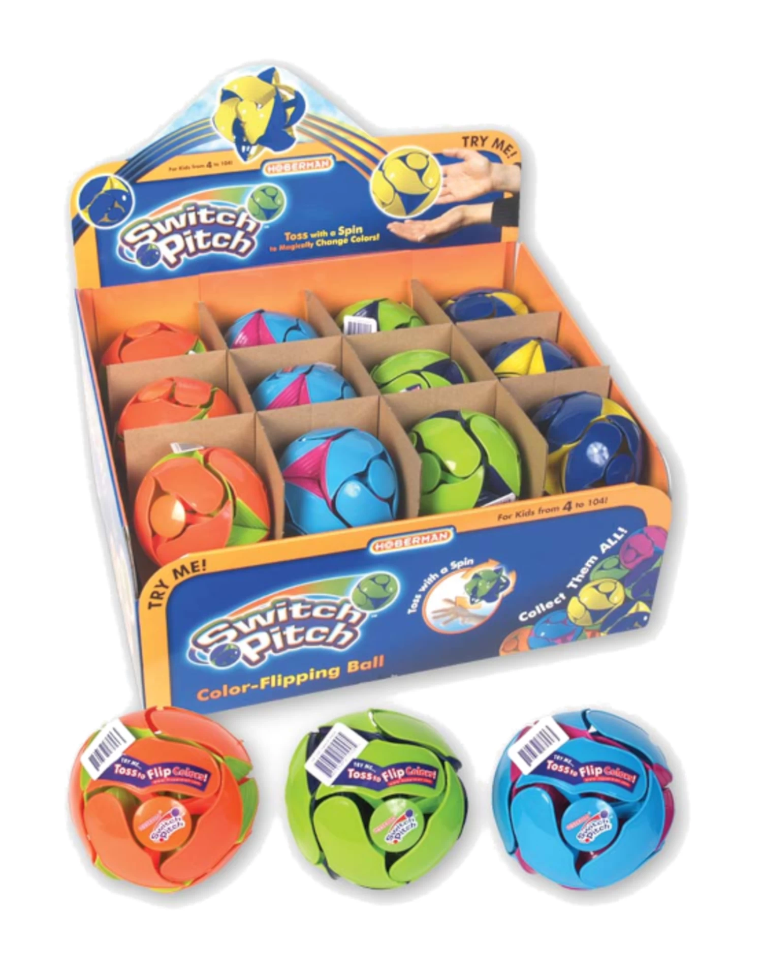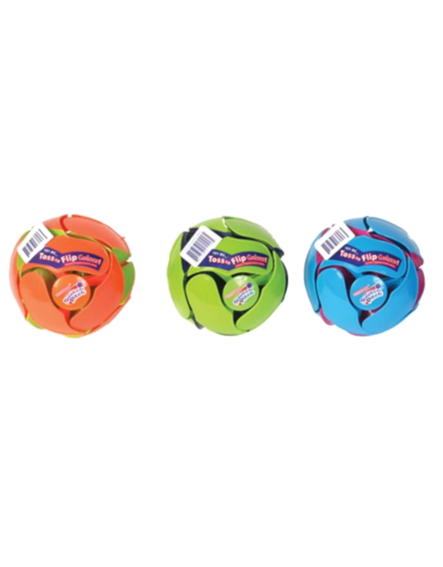 Toss it in the air and watch the colors magically flip! Hand held, magical color-flipping balls make a fun, portable toy! Collect them all! Toss just one or try to juggle with three! Roughly the size of a softball, this lightweight, transforming ball changes colors when flipped in the air. Ball for children and adults, changes colors when you throw it. Single ball selected at random.