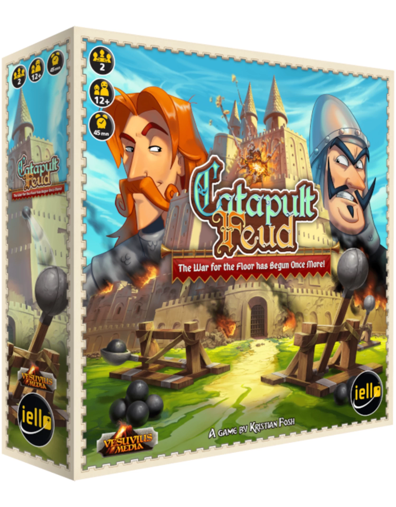 Starting with the youngest player, choose your family: Chaufort or Cunningfields. Then, use your bricks to build a castle to fortify your troops. Using your catapult, launch boulders in an attempt to destroy your opponent’s castle and knock over their troops. When all troops of one family are knocked over, the battle is over. The winning family must have at least one troop standing upright.