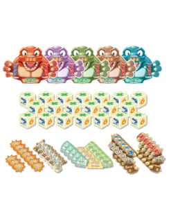 In “easy”, players roll their battle dice as quickly as they can to attack their neighbors, heal themselves, or blow up all the other players. Gameplay is fast and furious, and with super simple rules, everyone can get in on the action as quickly as you can take the game out of the box.
