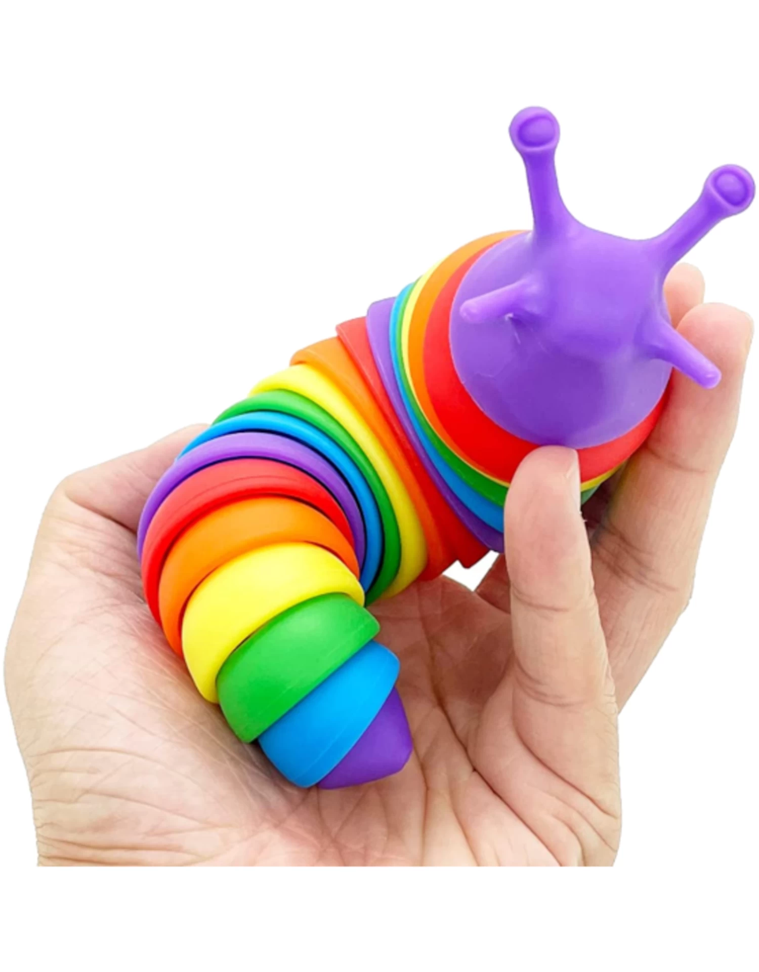 The slug toy can rotate 360 degrees, has a total of 19 joints, and is super flexible. All 19 joints can be removed and reinstalled separately. When you have a slug toy of multiple colors, you can disassemble and reassemble the color you like.