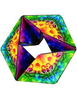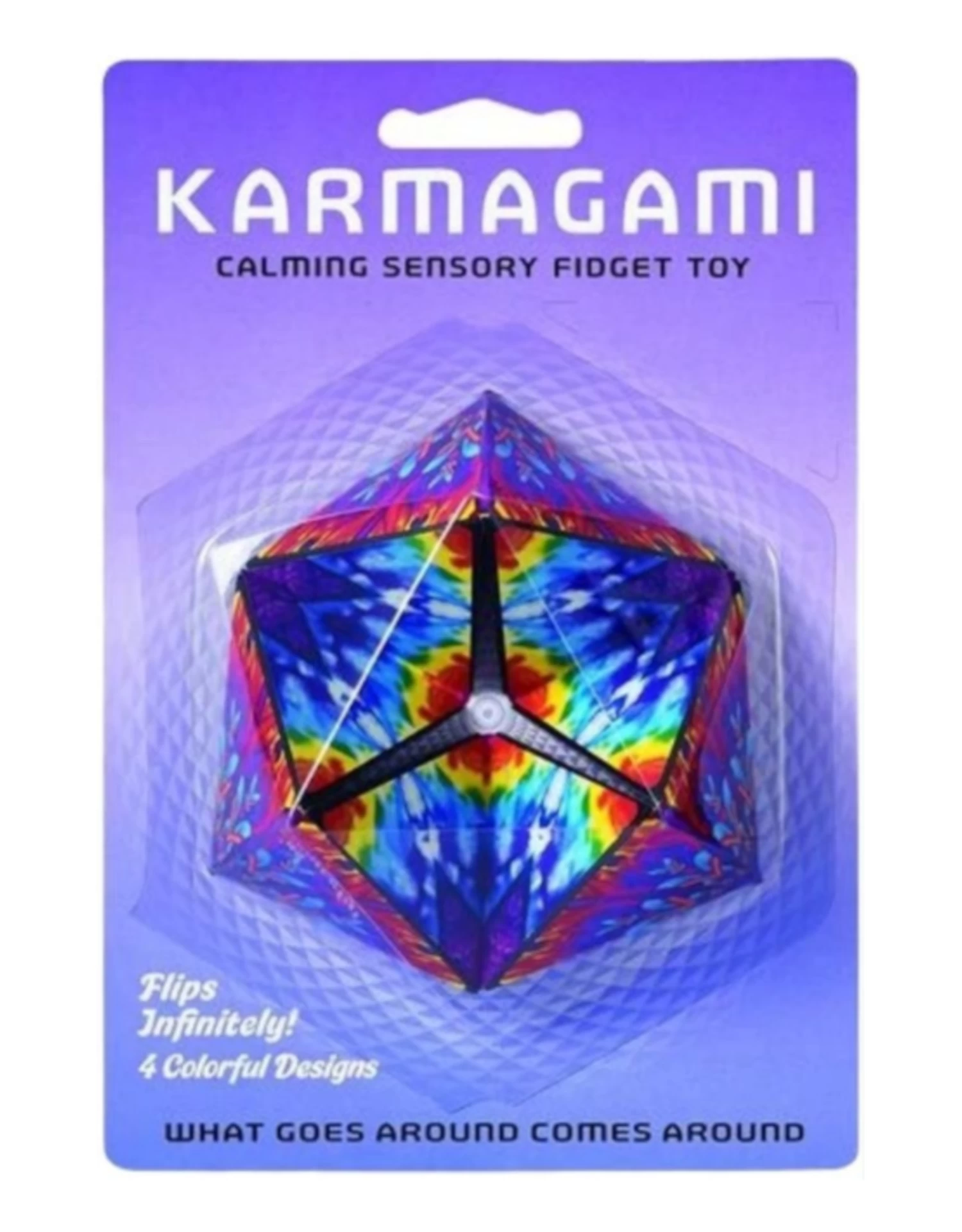 Karmagami flips infinitely – rotating and transforming seamlessly into 4 colorful designs like a kaleidoscope. It helps calm the mind and is great for kids and adults who constantly fidget with their hands. Anyone can flip it forwards and backwards endlessly. It’s easy to use for all ages! No noise. No gimmicks. Just pure flipping fun!