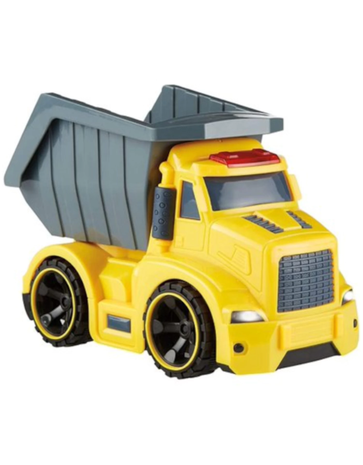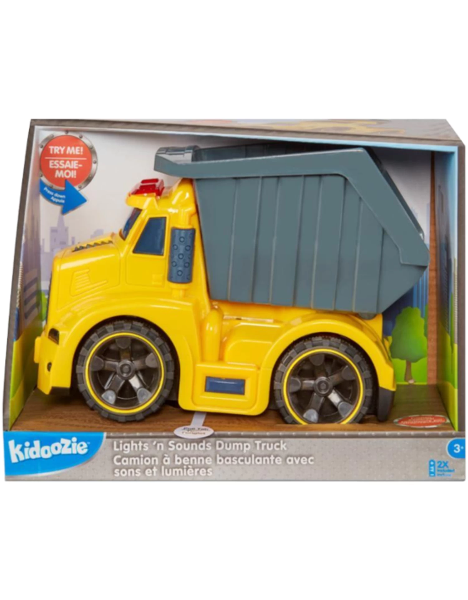 Kidoozie’s Lights N’ Sounds Dump Truck roars with friction power, lights and sounds and, working dump bin
