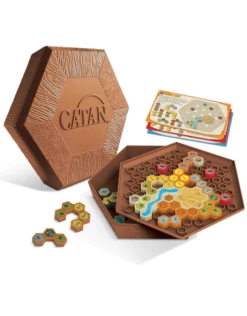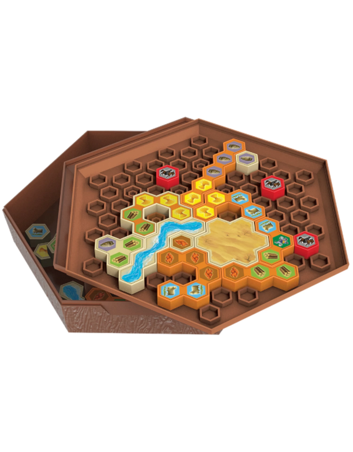 You are a bold merchant explorer dedicated to uniting the people of Catan with a single trade route, linking all the island’s settlements. Discover new paths to prosperity as you broker trade between settlers and caravans carrying goods from Catan’s far flung quarries, forests, and fields. Plot trails that wind through wild terrain, avoid roving bands of robbers, and pave the way for new villages, camps, and outposts — allowing trade to flourish across Catan like never before!