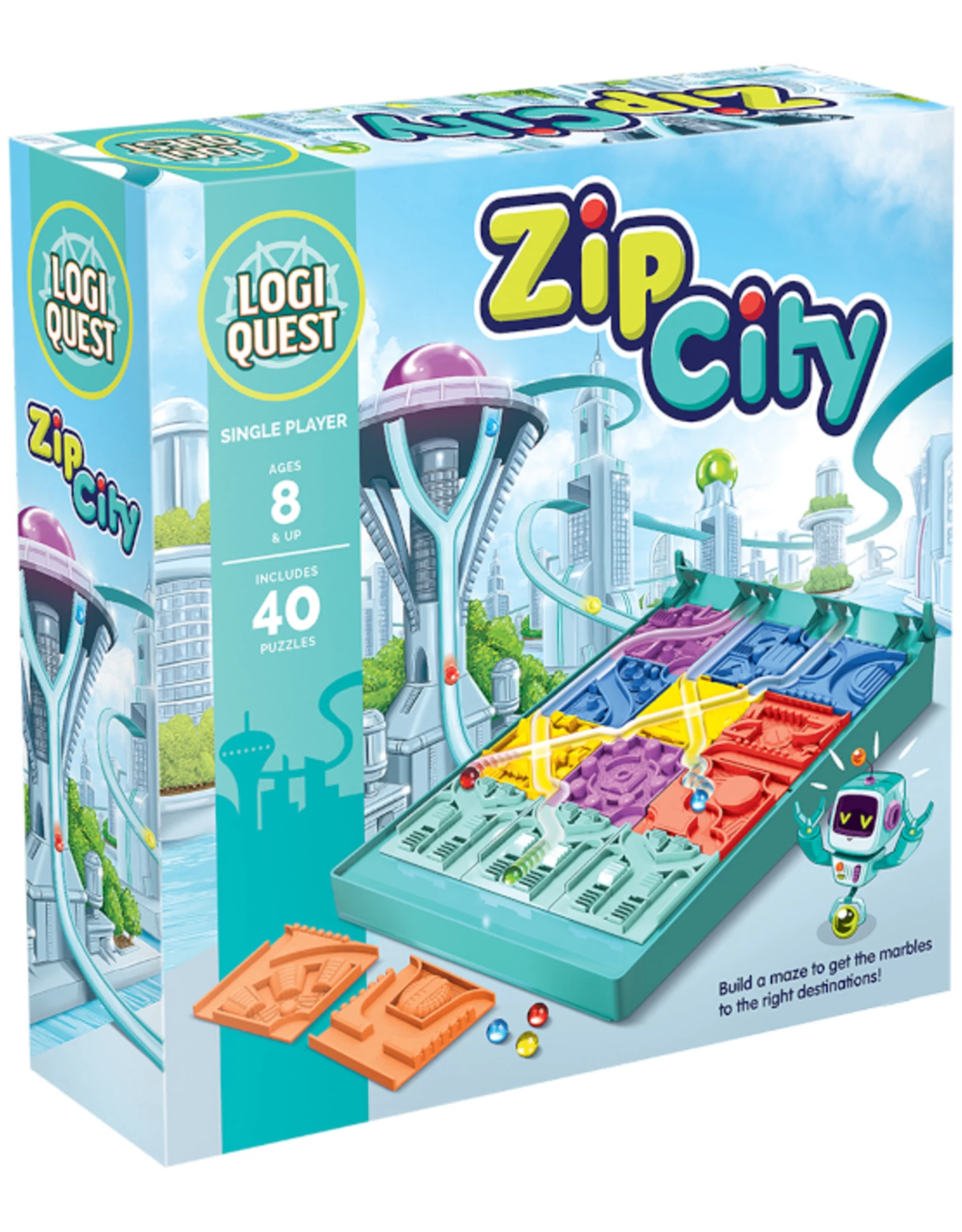 In the futuristic Zip City, self-driving marble cars race through city blocks that can be rearranged to accommodate traffic flow.