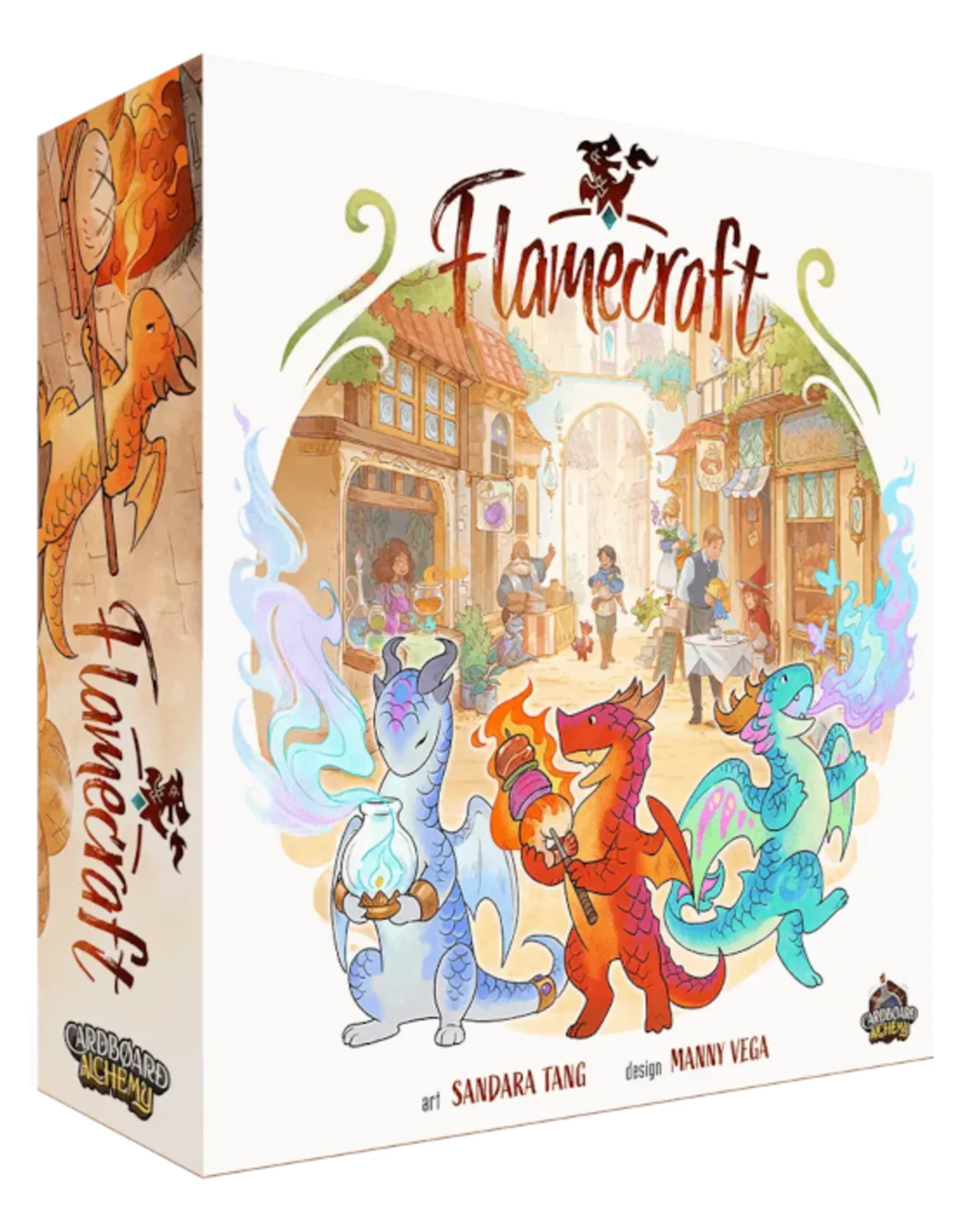 Artisan dragons, the smaller and magically talented versions of their larger (and destructive) cousins, are sought by shopkeepers so that they may delight customers with their flamecraft. You are a Flamekeeper, skilled in the art of conversing with dragons, placing them in their ideal home and using enchantments to entice them to produce wondrous things. Your reputation will grow as you aid the dragons and shopkeepers, and the Flamekeeper with the most reputation will be known as the Master of Flamecraft.