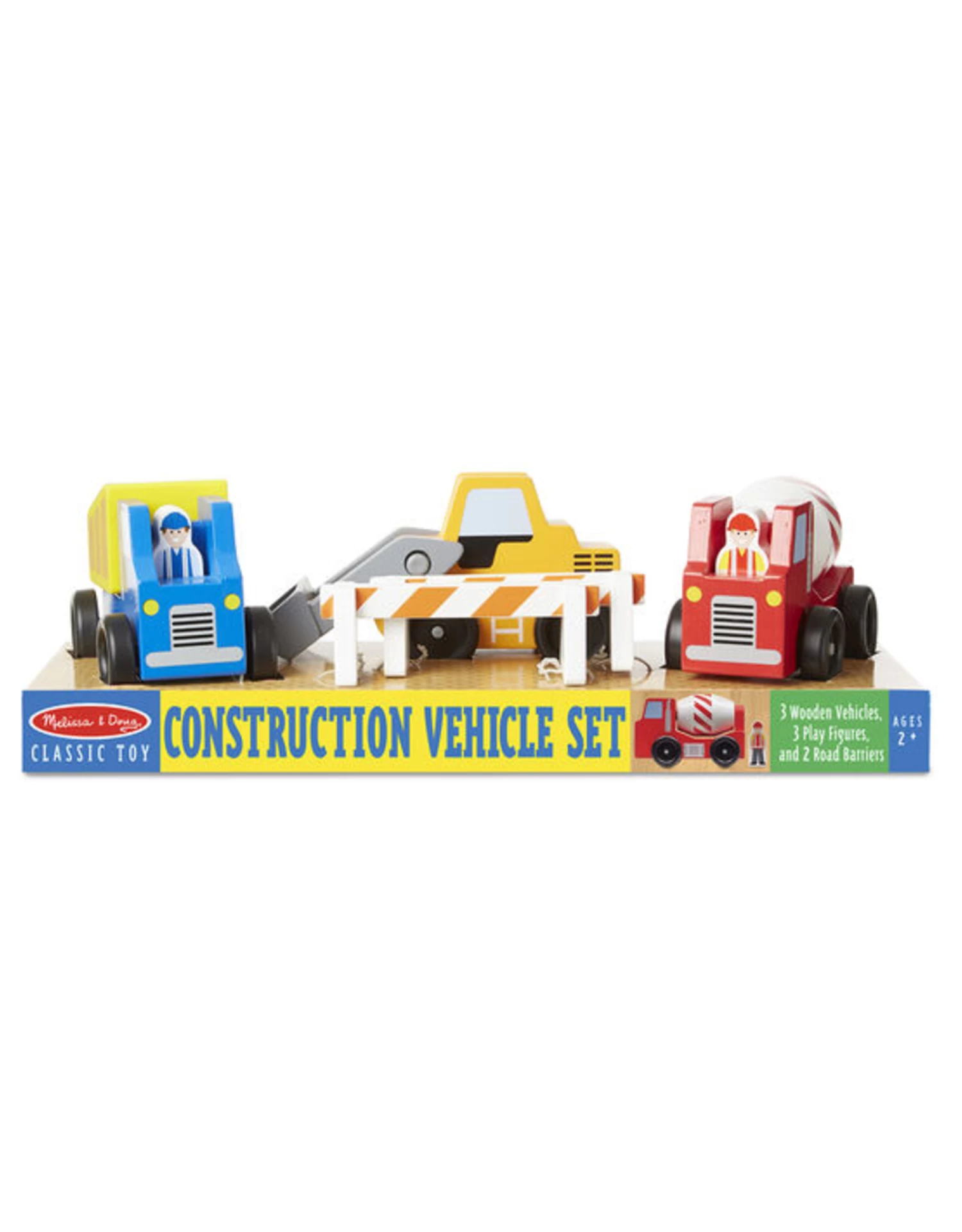 Get to work with this collection of three wooden emergency vehicles and two road barriers! Sturdy wooden construction and moving parts on each vehicle means the dump truck, cement mixer, and front loader will stand up to endless of hours of constructive play. Wooden construction worker play figures fit into each of the vehicles and can also be removed for additional imaginative play opportunities.