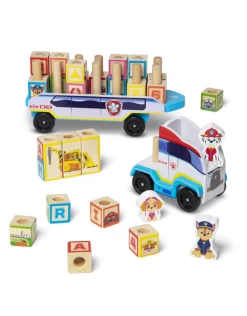 PAW Patrolâ„¢ is on a roll! Arrange wooden blocks on attached dowels on this sturdy wooden hauler vehicle or stack them in countless combinations. Blocks include letters, numbers, shapes, scenes to piece together (borders are color-coded), and PAW Patrolâ„¢ characters. Three wooden play figures add lots of pretend play opportunities! The jumbo vehicle gets kids three and older moving, while block play helps with fine motor development, letter and number recognition, problem-solving, and storytelling skills. PAW Patrolâ„¢ is always ready to help, inspiring preschoolers with a blend of teamwork, adventure, and humor as they develop social, emotional, and developmental skills through play.