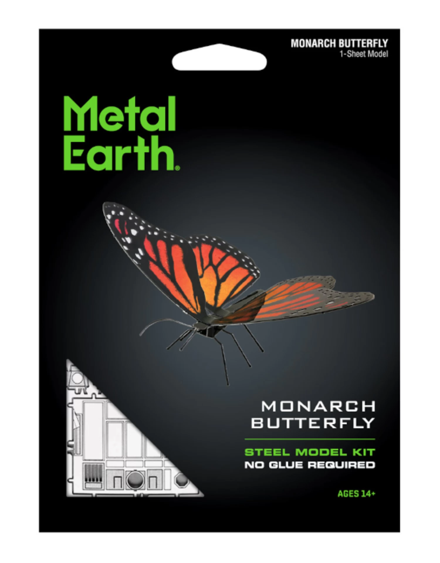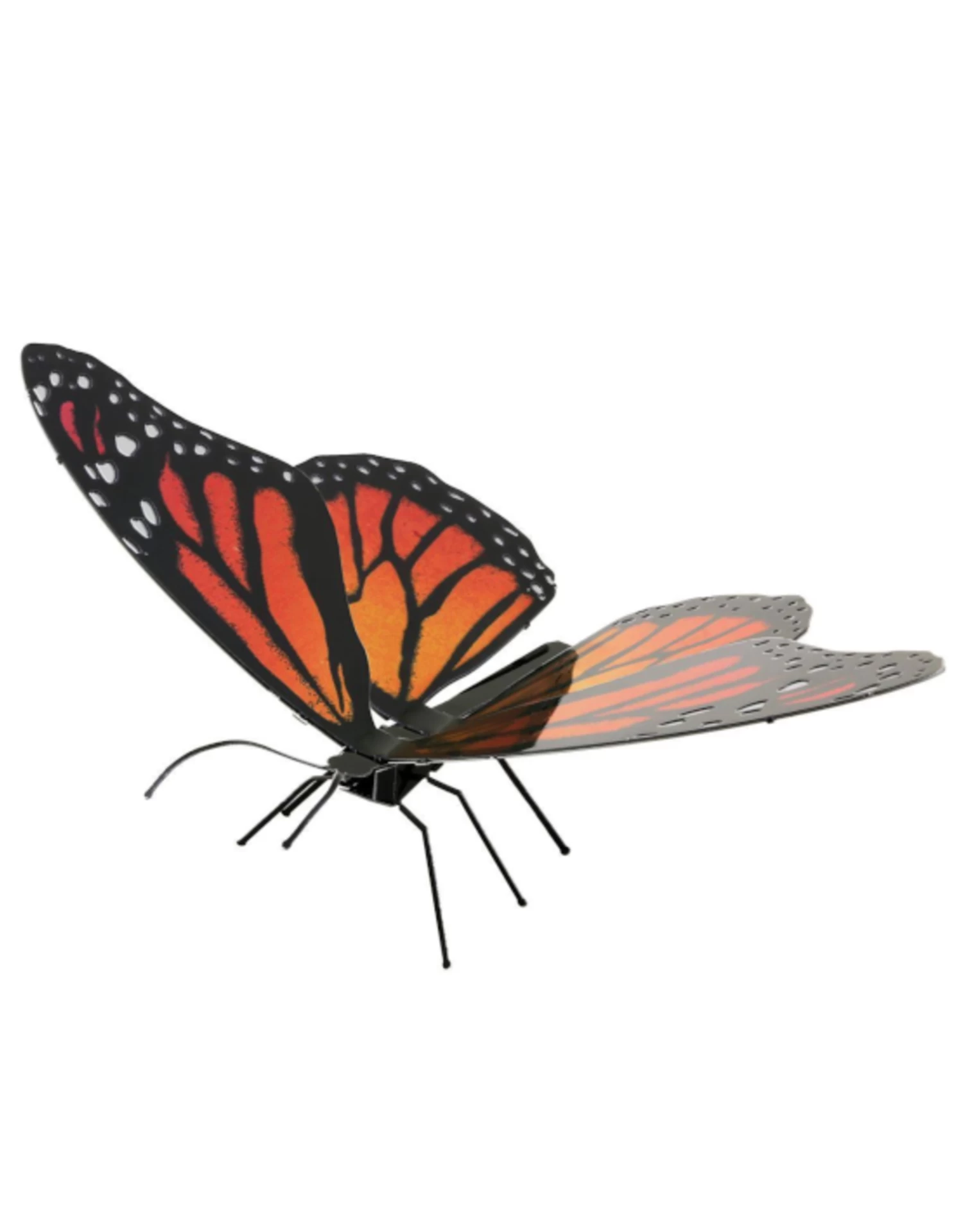 All Metal Earth butterflies are made of 1 sheet colored models and are rated as “Easy” builds. The upper (dorsal side) and undersides (ventral side) of the forewings and hindwings are decorated in color.