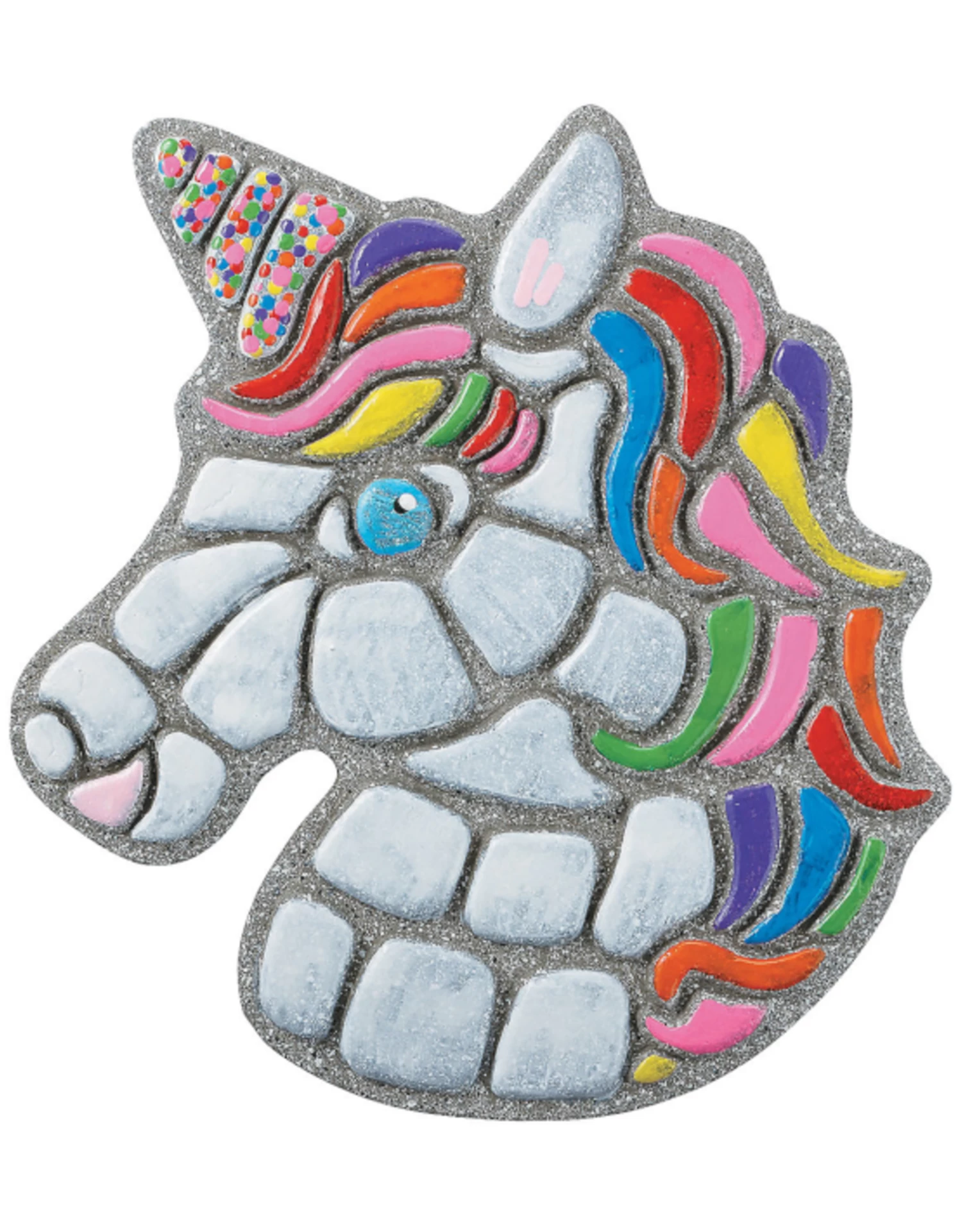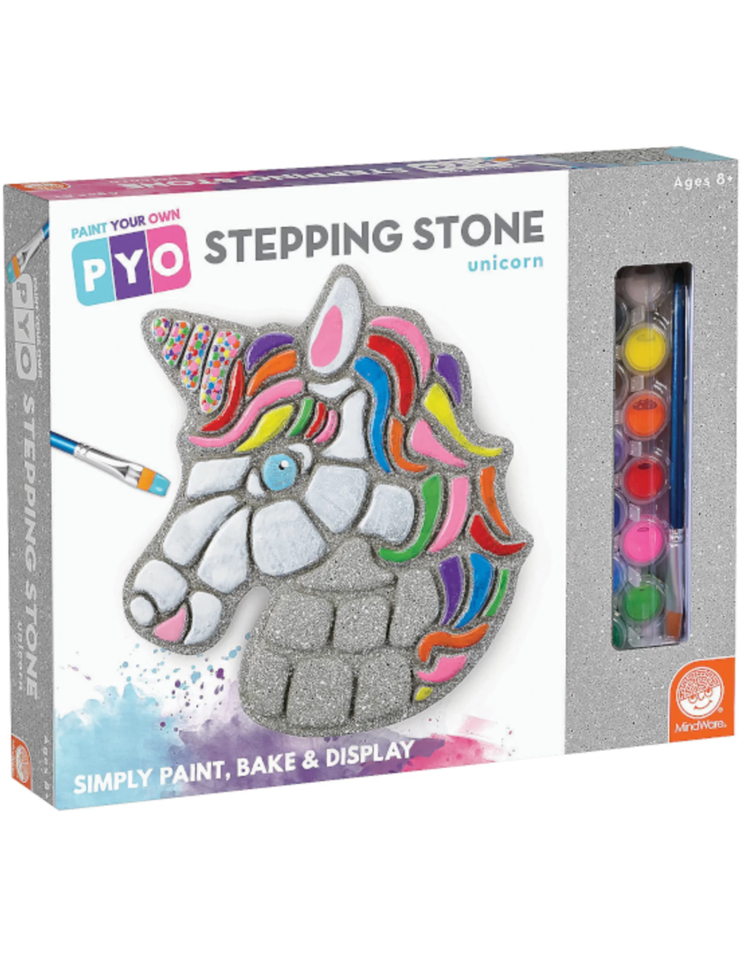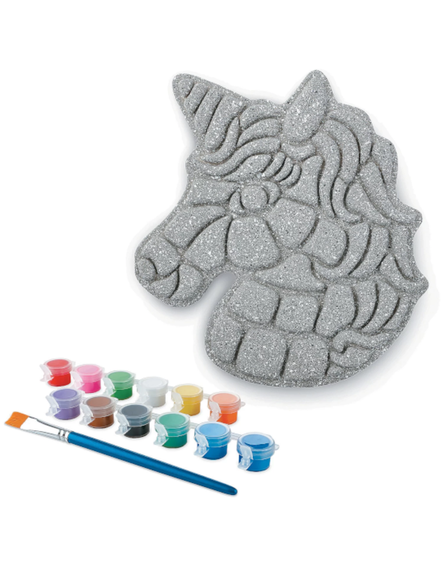 This all-weather stepping stone is ready to paint right out of the box, letting you skip messy cement-mixing and get right to the fun part: decorating and personalizing! A dozen vibrant paints allow for endless creativity—mix, blend and add custom color accents. Once painted, bake the stone in your oven for a long-lasting, weather-resistant finish. Display one stepping stone or make a whole pathway to transform your garden, backyard or patio! Kit includes a 9″ x 9.5″ cement stepping stone, 12 paints, a paint brush and instructions.