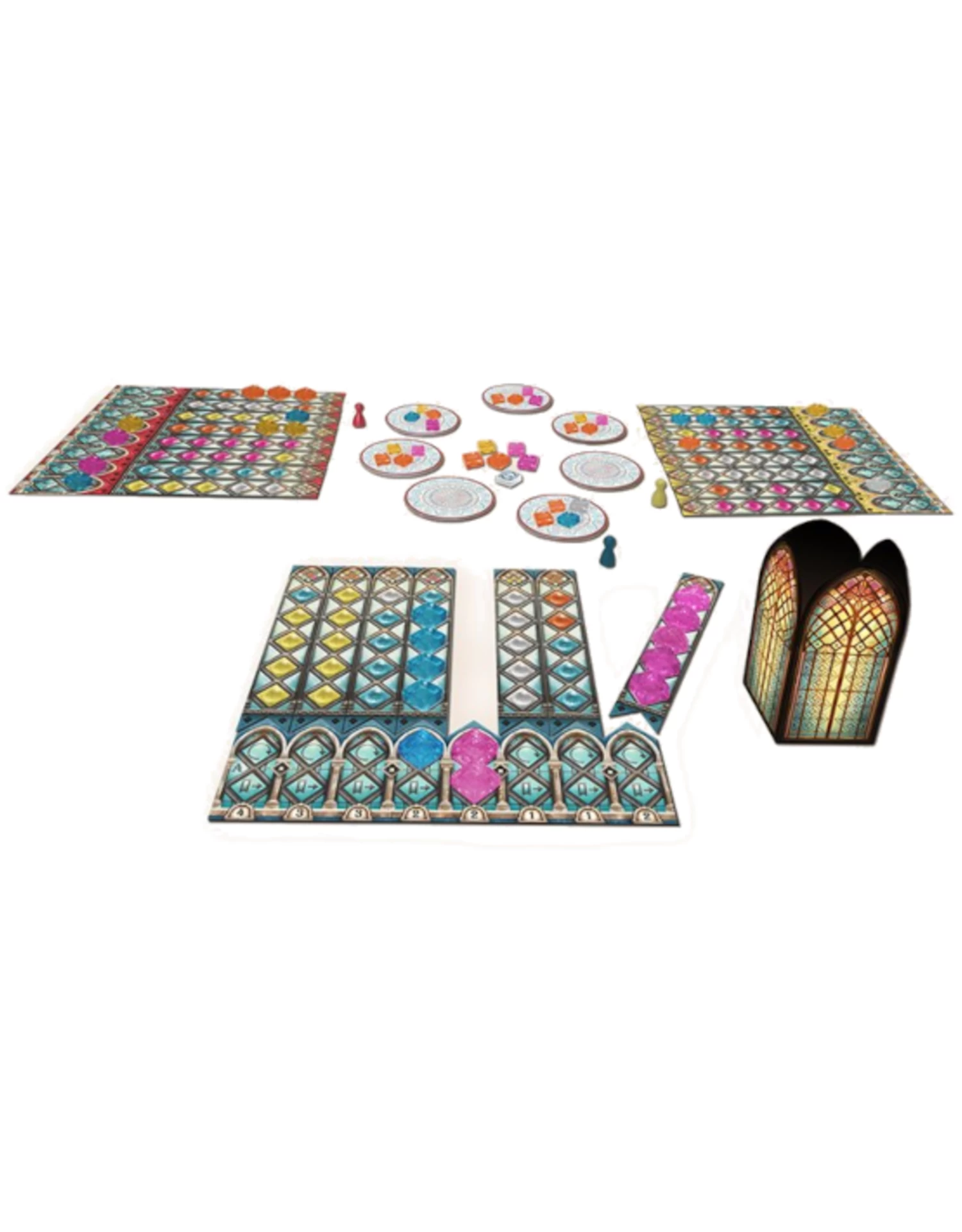 Created by Michael Kiesling, Azul: Stained Glass of Sintra challenges players to carefully select glass panes to complete their windows while being careful not to damage or waste supplies in the process. The window panels are double-sided, providing players with a dynamic player board that affords nearly infinite variability!Players can expect to discover new unique art and components in Azul: Stained Glass of Sintra, including translucent window pane pieces, a tower to hold discarded glass panes, and double-sided player boards and window pane panels, in addition to many other beautiful components!