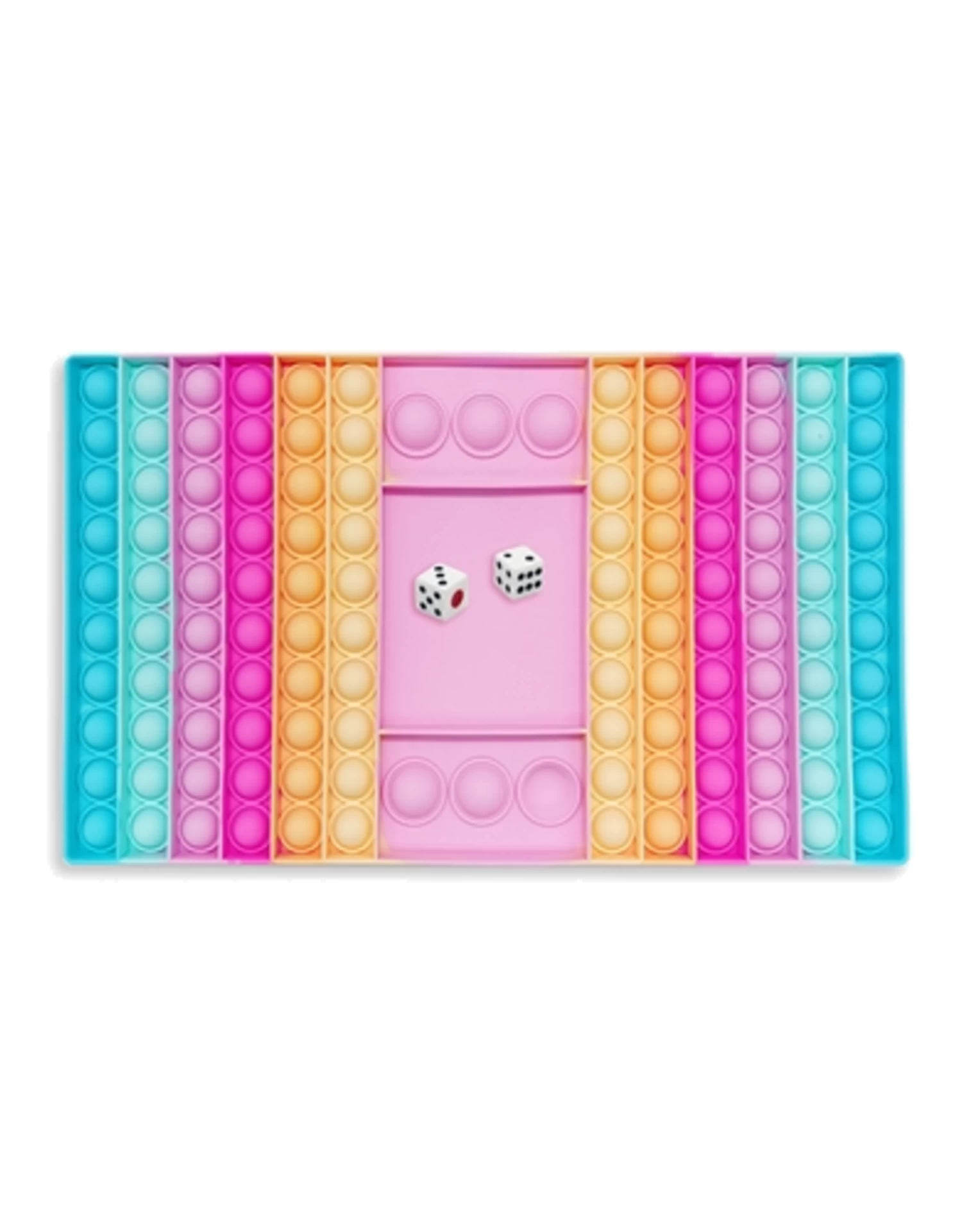 Introducing OMG! Pop Fidgety Game! The fun bubble popping fidget game you can use as a fidget toy or as a game to play with friends! Comes with a set of dice.