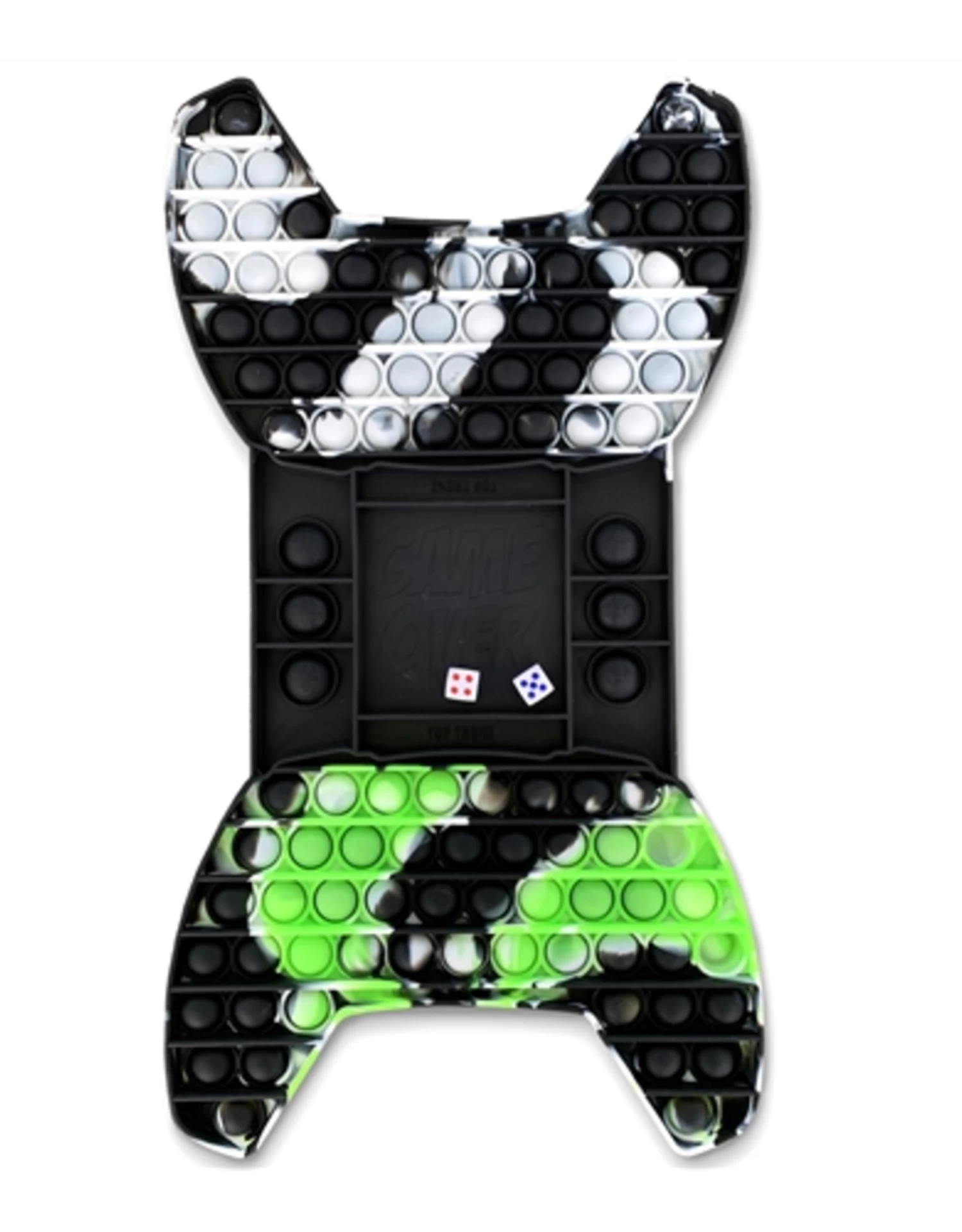 Introducing OMG! Pop Fidgety Game! The fun bubble popping fidget game you can use as a fidget toy or as a game to play with friends! Comes with a set of dice.
