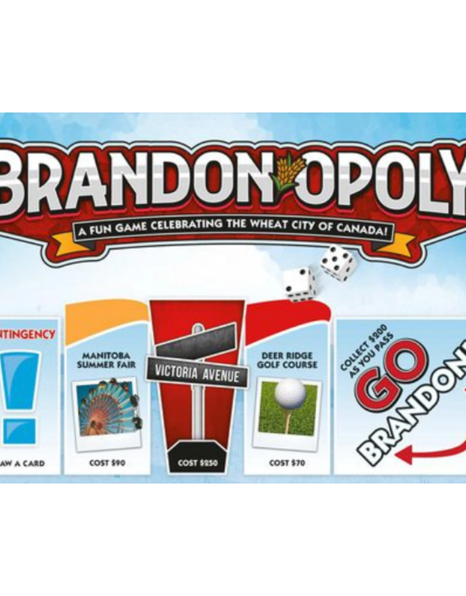 While it’s impossible to include everything, we jammed all the Brandon we could into this box. It’s full of outdoor adventures, family attractions, rich traditions and of course…Keystone Centre- a little something for everyone! Looking for a fun way to experience the Wheat City of Canada? Buy your favourite Brandon properties, increase your rent by collecting City Blocks and trading them in for Keys to the City. Sound easy? Well, add in some traffic jams, property tax and parking fines and it gets a little more difficult and a lot more fun! So choose your token and advance to Brandon! You may soon be the Mayor…or out of the game for eating too many Falafel Wraps from Lady of the Lake!
