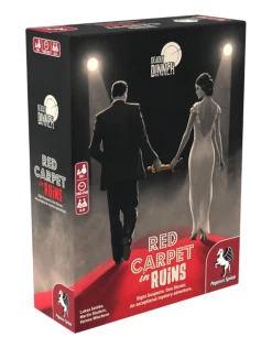 Deadly Dinner – Red Carpet in Ruins is a classical murder mystery game designed for six to eight players. It is played over three rounds, during which the players receive new information about the sequence of events as well as secret objects that can be found in envelopes in the game box. The players have to discuss the information and clues they have available to identify the culprit in the end. A blueprint of the location and character standees allow them to keep track of who was where when the crime occurred.