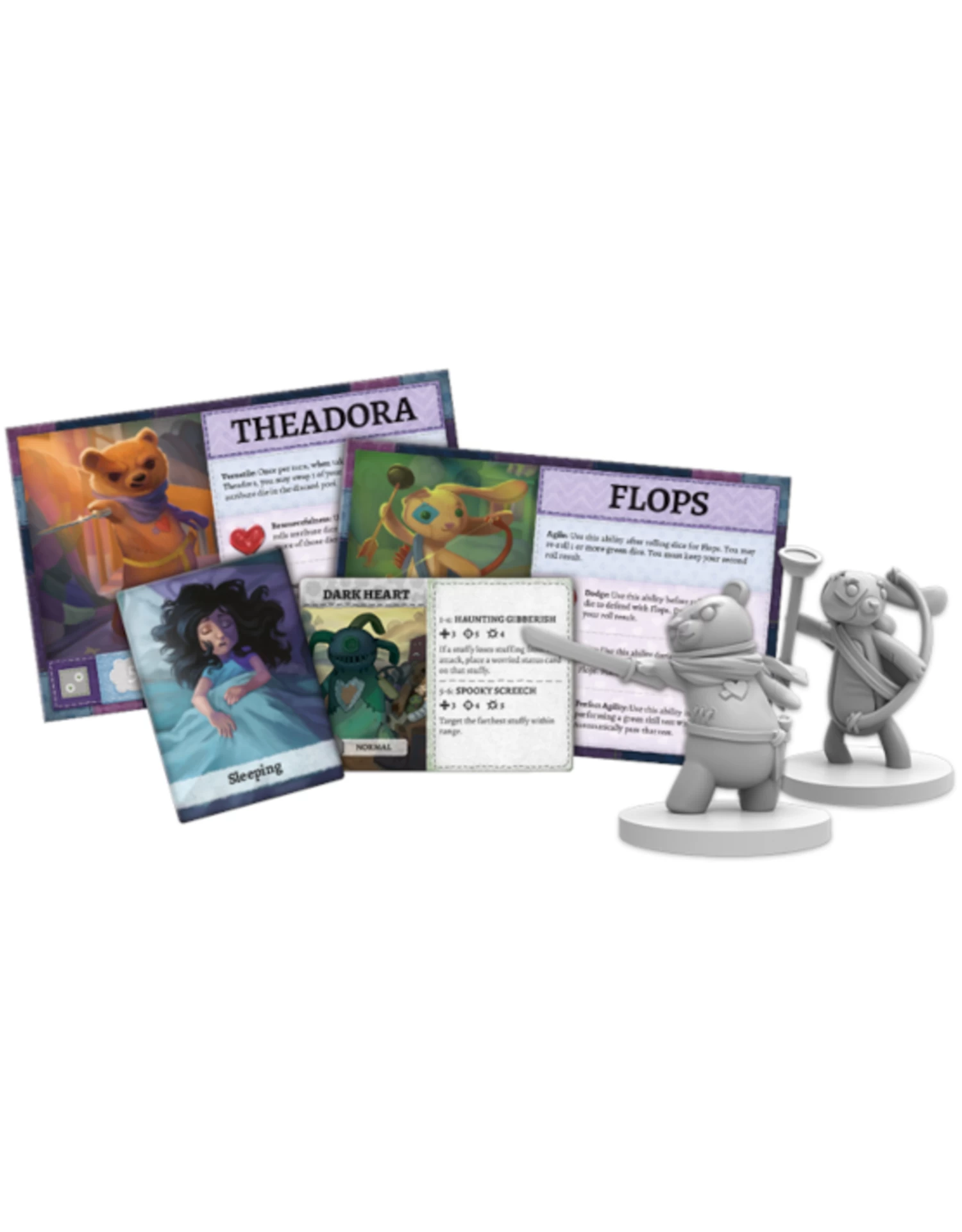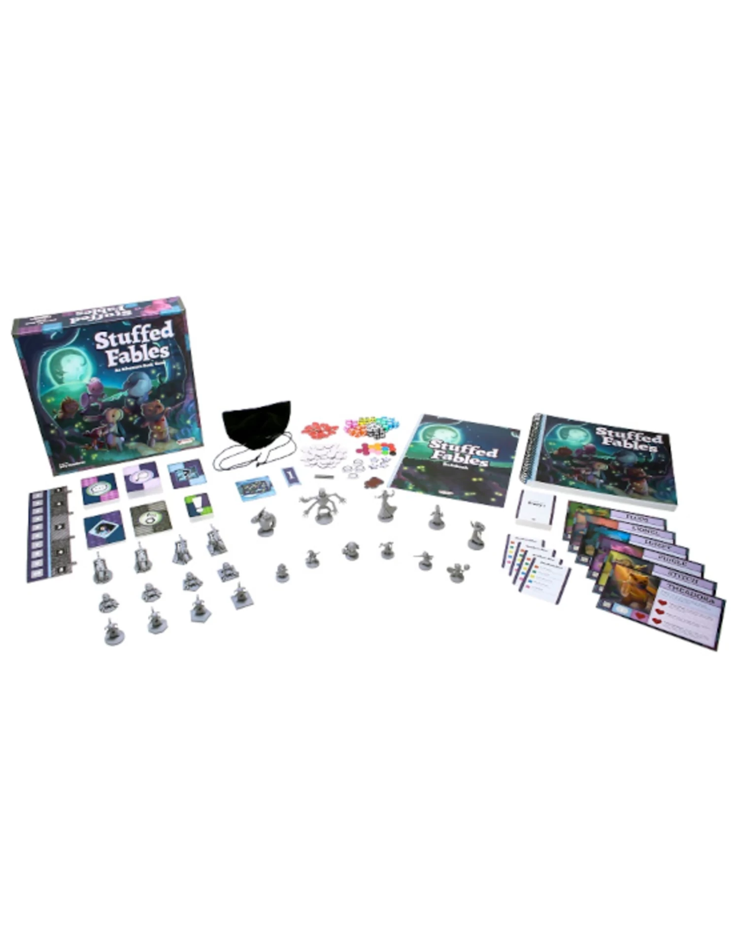 Sworn to protect the little girl that loves them, a group of stuffed toys has been drawn into the Fall, an otherworldly, fantastic realm ruled by a brooding master of nightmares. Stuffed Fables is an endearing Adventure Book game in which players take on the roles of brave stuffies seeking to save the child they love from a scheming, evil mastermind. All of the action takes place in a unique storybook that acts as your rules reference, story guide, and game board all in one!