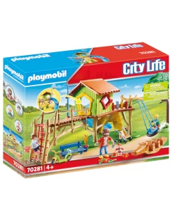 What could be nicer than romping and playing outside in the fresh air? The Adventure Playground offers everything that little bundles of energy need to have real fun. Slide, tire swing, climbing wall, of course all playground equipment has to be tested properly. Children’s favourite is the great crocodile seesaw, on which they can bounce and swing for hours. While the children play, daddy makes himself comfortable on the bench. The play set contains four PLAYMOBIL figures, a playground with climbing house, slide, tire swing, climbing wall, bench, crocodile seesaw, scooter, buggy and many other extras