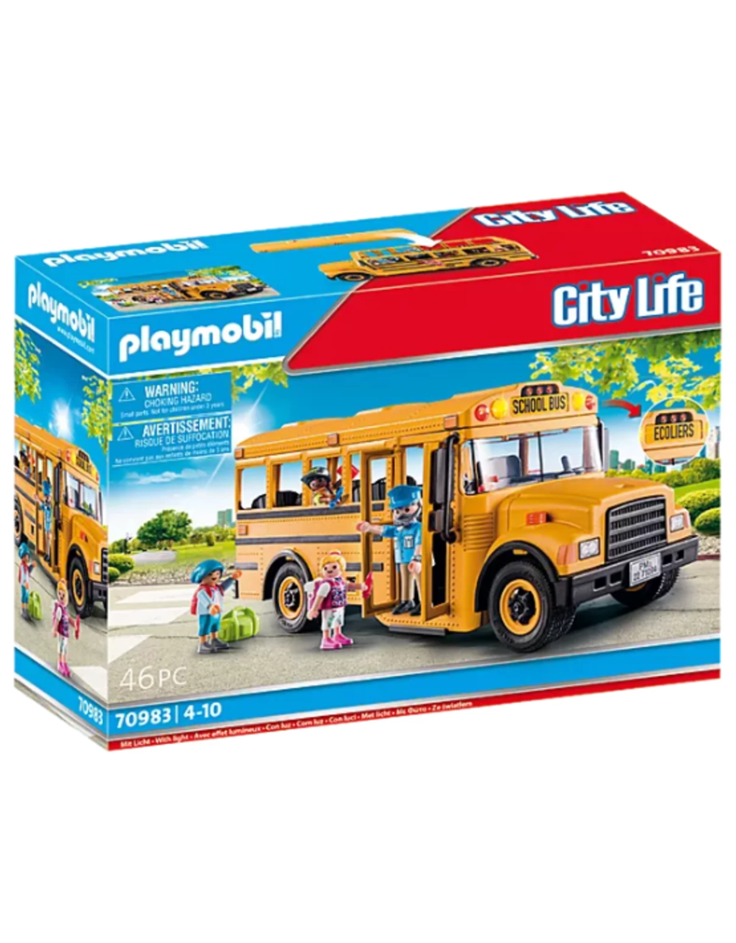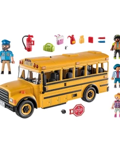 Time for school! Head out for a day of learning on the cool PLAYMOBIL School Bus. The functioning front and rear lights flash as the bus driver approaches the bus stop and extends the stop sign. Once the double doors open, the kids can climb aboard and choose a seat. Easily access the spacious interior, with seating for up to seven figures, thanks to the removable roof. Set includes 4 PLAYMOBIL figures a bus driver and three students. Accessory elements include backpacks, lunch bag, pencils, fire extinguisher, notebook and stop sing.