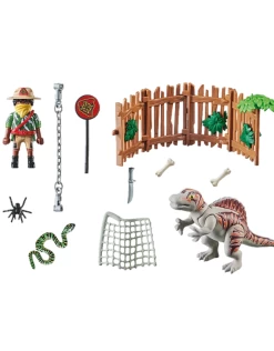 Welcome to the Jungle! The next adventure takes Team Dino Rise into the jungle. Evil poachers have captured a baby Spinosaurus and locked it in a cage. Of course, Team Dino Rise can’t just sit back and do nothing. But to free the little dinosaur they have to outsmart the villain and open the cage. With original characters, impressive dinosaurs and modern armor, the Dino Rise play world from PLAYMOBIL offers the perfect combination of dino action and fun. A great gift or souvenir for dinosaur lovers aged 5 and up.