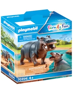 The hippo is one of the heaviest land mammals after the elephants. The massive animals prefer to stay close to the water and sleep all day long or drift calmly in the water. The hippopotamus is just yawning extensively and then disappears again. The play set consists of a hippo with a baby. Both animals can swim.