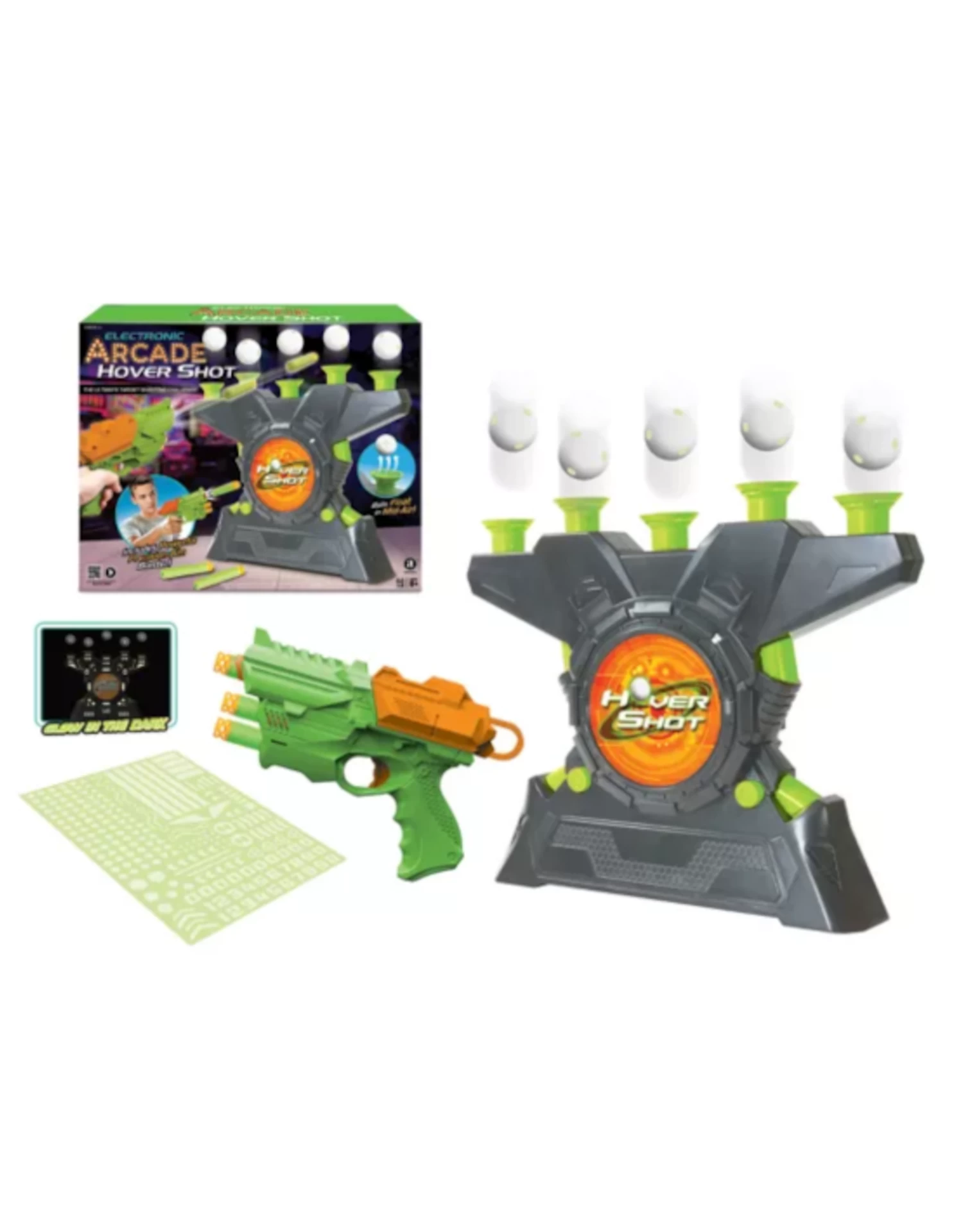 This isn’t your average target-shooting game! Aim at the 5 balls hovering in mid-air and try to shoot them down. Want an extra challenge? Turn off the lights and the floating balls glow in the dark! Includes 2 different ball sizes (1” and 2”) for 2 levels of difficulty.