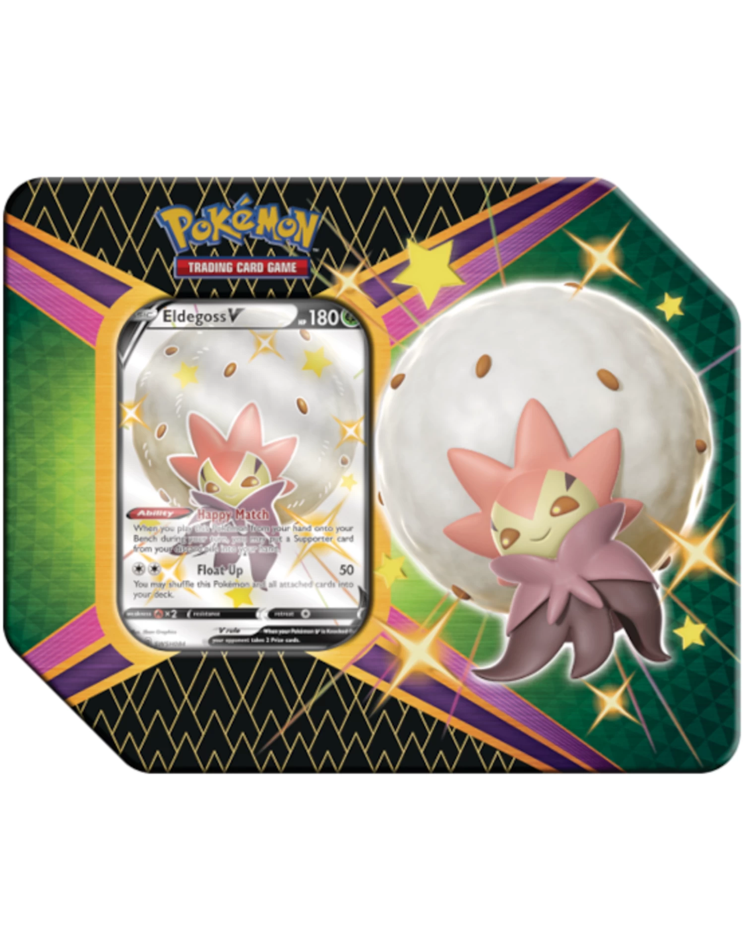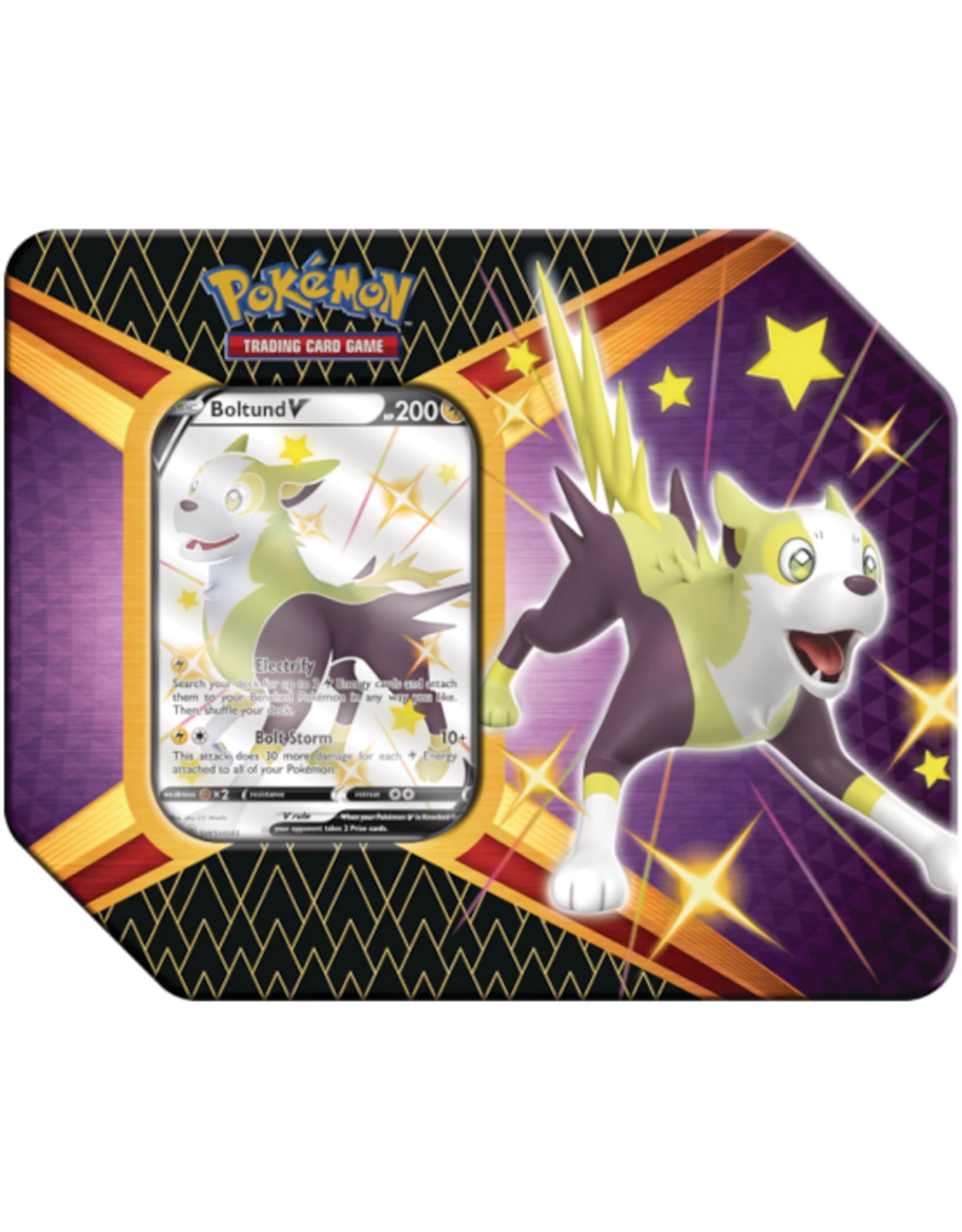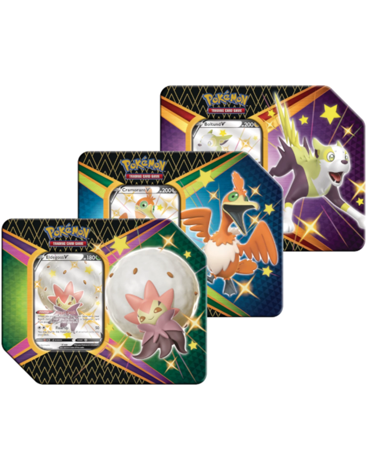 The Shiny Vault is full of distinctively colored Pokémon, including three especially fine ones from the Galar region! Choose the fluffy power of Eldegoss V, the lightning strikes of Boltund V, or the watery missiles of Cramorant V in the Pokémon Trading Card Game: Shining Fates Tin. Each of these fantastic tins contains a super-powerful (and Shiny) Pokémon V, with the tricks, the looks, and the sheer bravado to take you to the top in your next Pokémon battle!